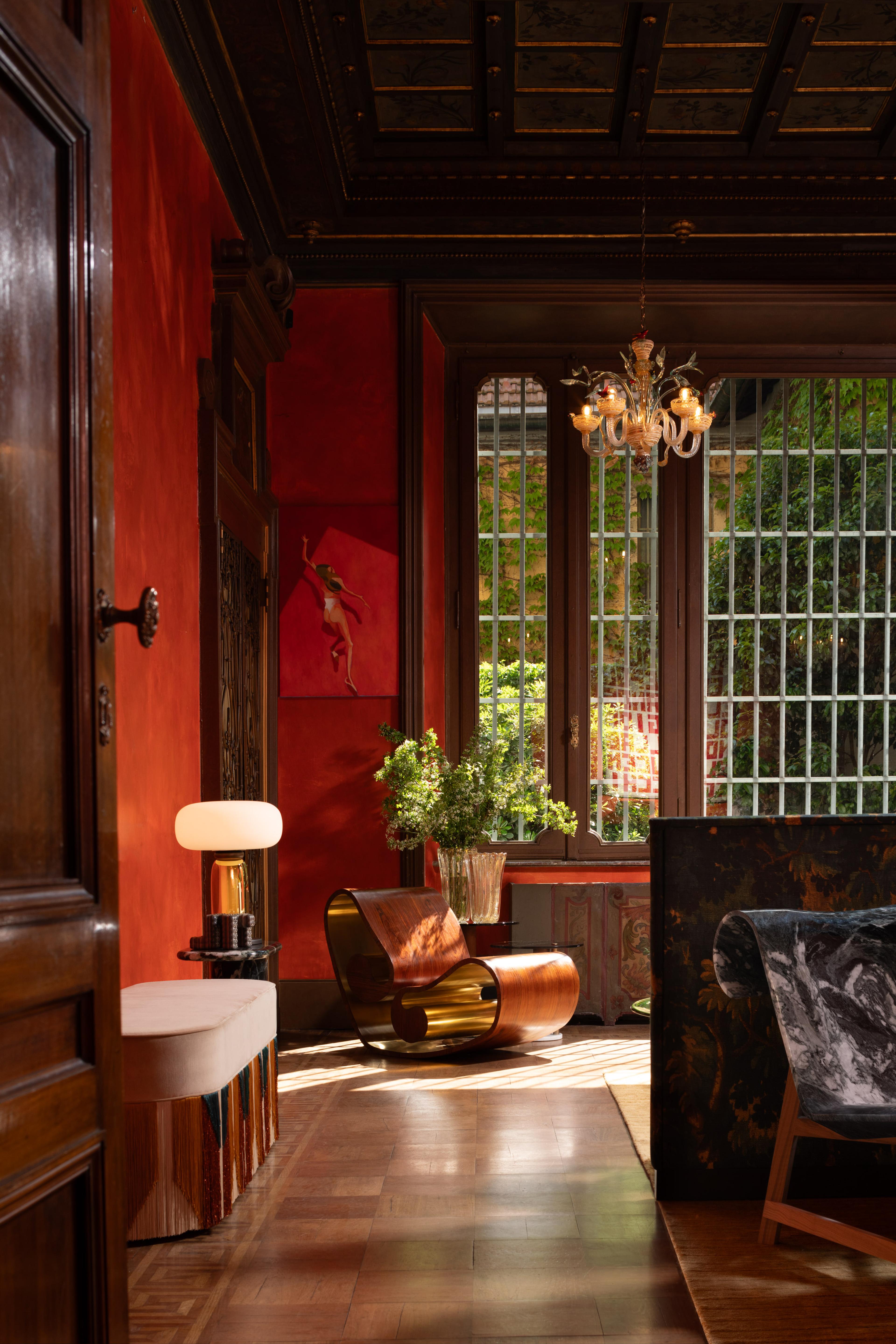 La chambre à coucher comprend des pièces de Adriani e Rossi, Agapecasa, Alessandro Pongan, Bau Design, Bottega Veneziana, Carpanese Home, Carpet Edition, Casa Parini, Caterina Frongia, Daniel Cavey, Daria Dazzan, Daytona, Draga & Aurel, Enrico Verger, Firmamento Milano, Fornace Mian, Fornice Objects, Ghidini 1961, Giannini, Giopagani, Il Pezzo Mancante, Jwana Hamdan, La Fucina Di Efesto, LO Décor, Lorenza Bozzoli Couture, Marco Gaviraghi Calloni, Marioni, Matteo Mauro, MGM Marmi e Graniti, Nicola Tomaselli, Once Milano, Purho, Rivolta Carmignani, Roberto Cambi, San Patrignano, Scapin Collezioni, Secondome Edizioni, The House of Lyria, Vanessa Cavallaro, Wanderart