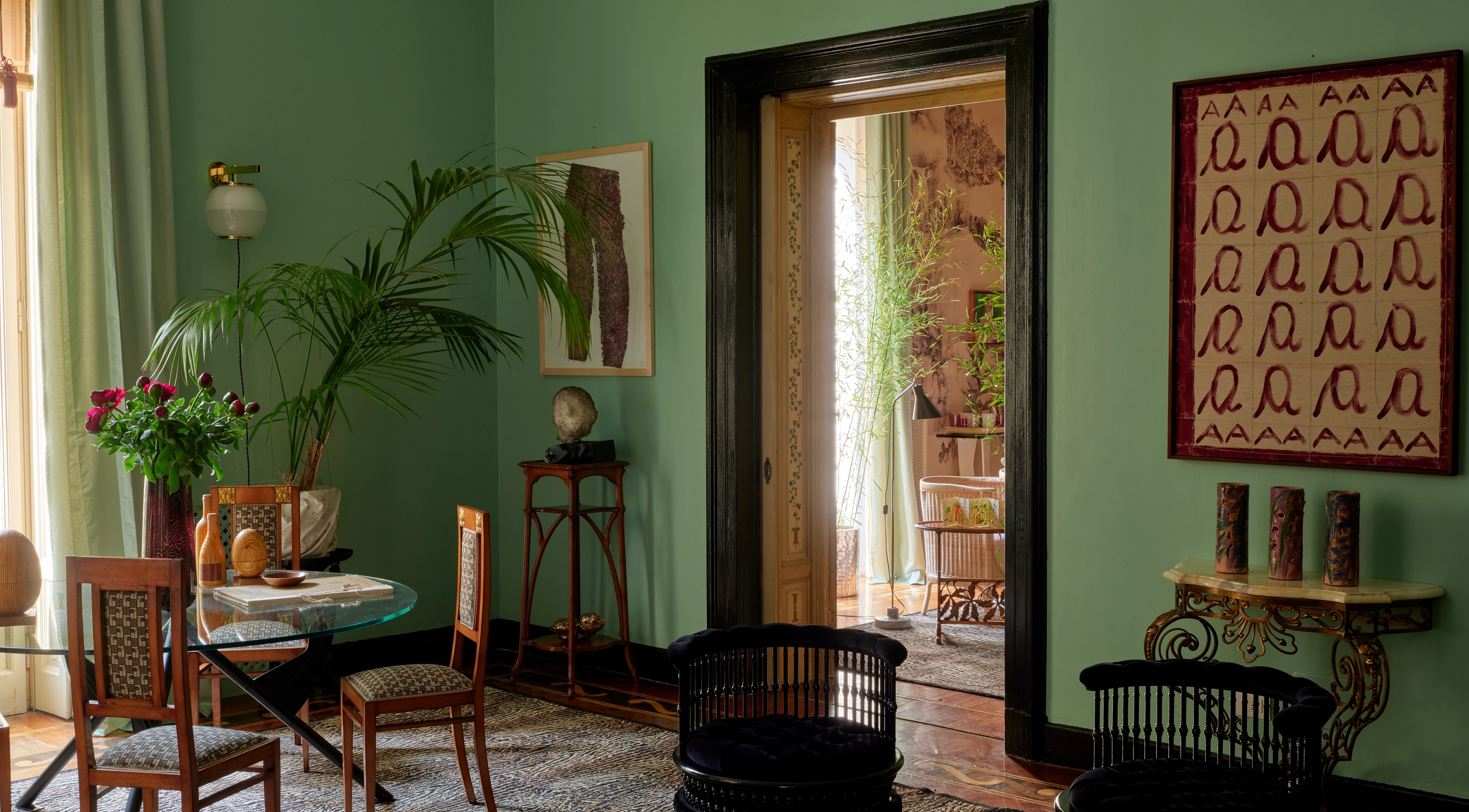 Les salons de divertissement de Charlap Hyman & Herrero s'inspirent des intérieurs chargés d'histoire du Palazzo Valguarnera-Gangi, tel qu'immortalisé dans le film de Luchino Visconti Il Gattopardo, traduisant la grandeur cinématographique du palais dans un espace qui semble à la fois opulent et profondément accueillant. La splendeur aristocratique est adoucie par le temps, avec des surfaces superposées suggérant des générations d'utilisation et des pièces disposées avec une aisance étudiée. Les groupes de sièges se chevauchent naturellement, les tables sont légèrement décalées, et la circulation s'écoule de manière intuitive, reflet de l'évolution d'une grande pièce à travers des rituels et des habitudes changeantes. L'ameublement dans des teintes profondes et résonnantes et un éclairage atmosphérique chaleureux renforcent le sentiment d'intimité et de rituel discret, créant une pièce où l'élégance, la chaleur et l'histoire coexistent avec une informalité sans effort.