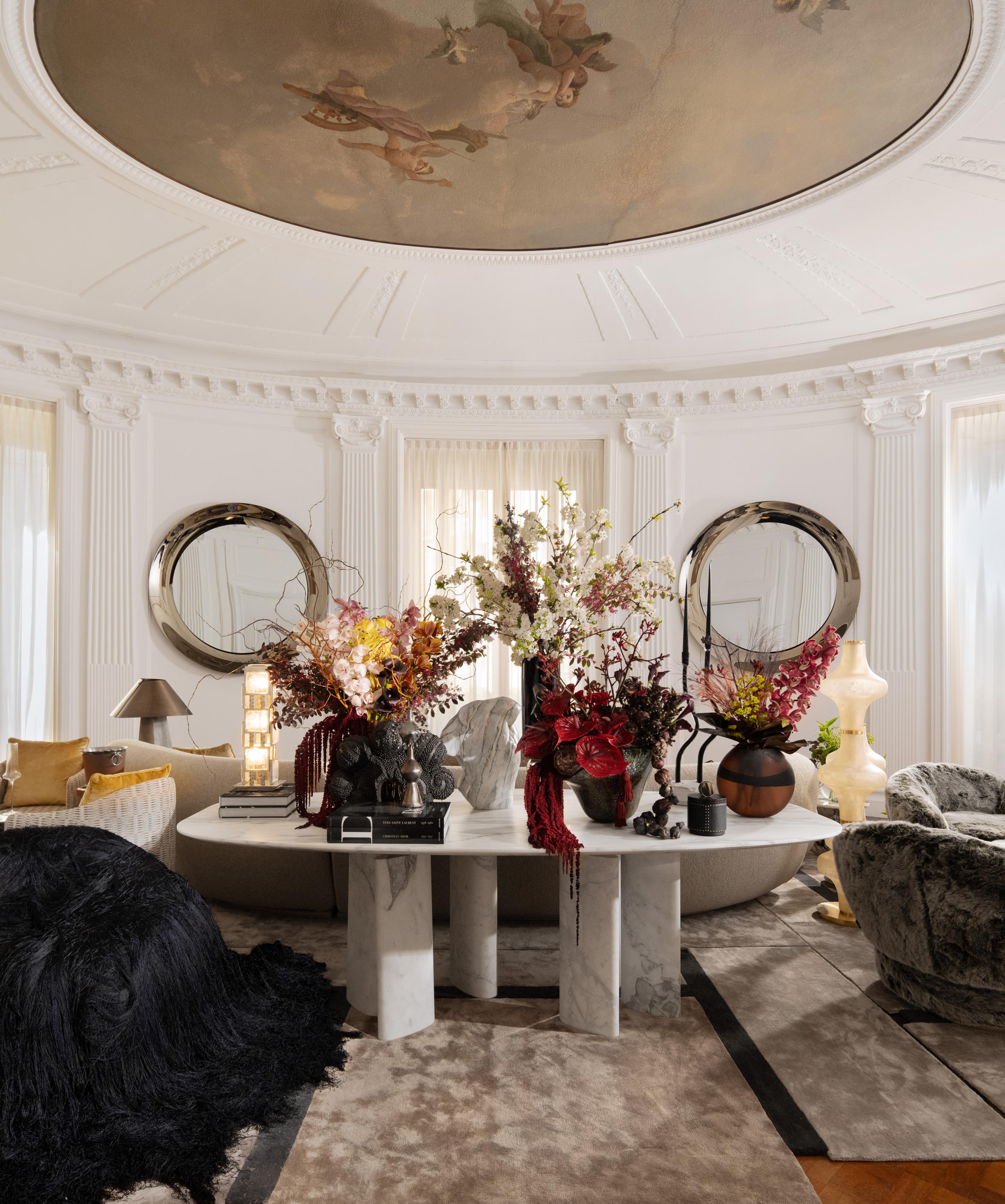 Meyer Davis présente La Sirena, unGrand Salon où l'allure rencontre le mystère. Le studio a voulu explorer les façons dont les intérieurs de palazzo classiques pouvaient être présentés comme une ode à la modernité italienne.
