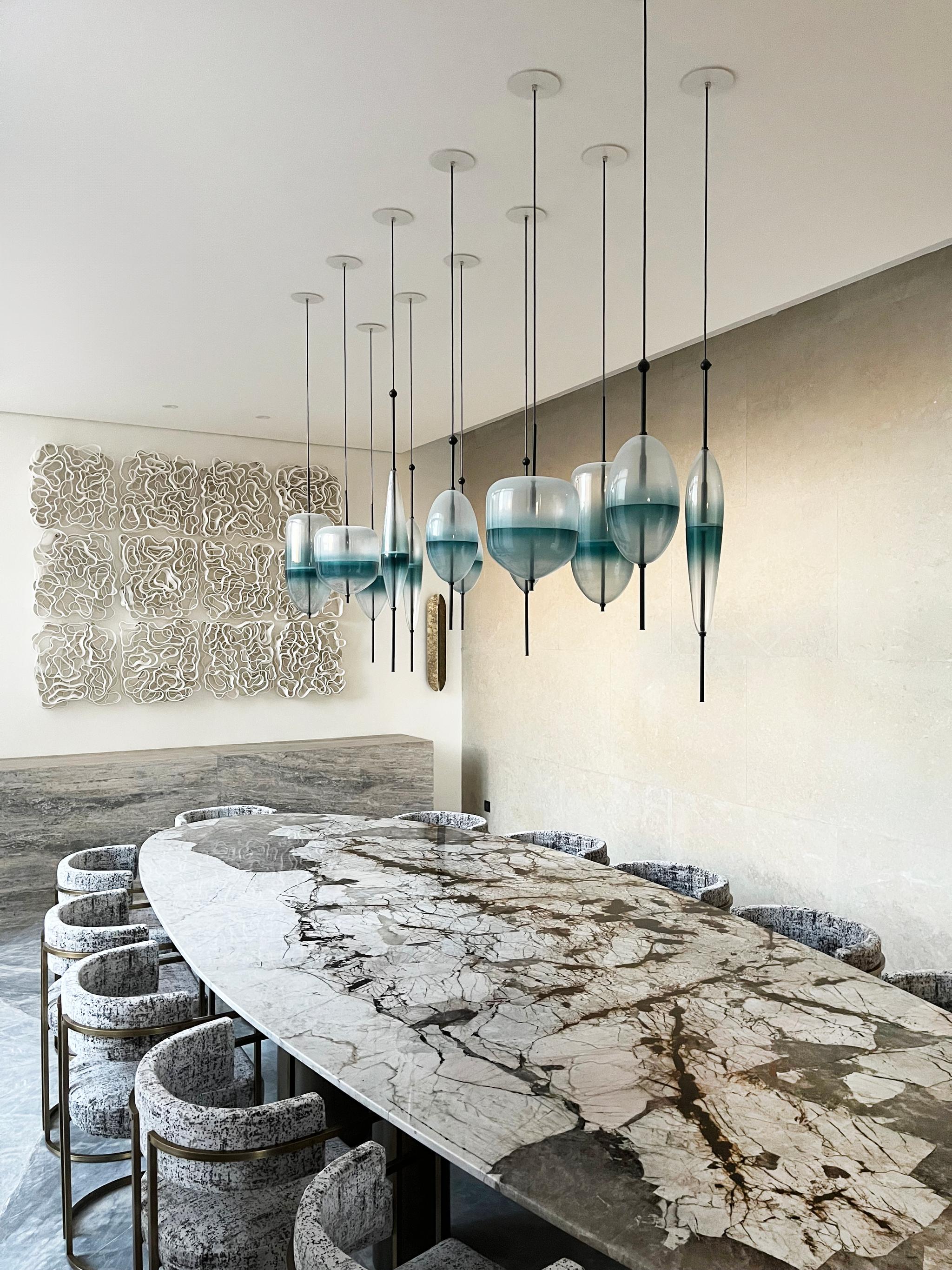 Cela se reflète dans ma profonde appréciation pour l'artisanat et l'utilisation de matériaux raffinés, allant du marbre aux veines riches aux bois et métaux tactiles. Chaque matériau est soigneusement sélectionné pour offrir la meilleure expérience spatiale. La matérialité, les proportions et le contraste jouent un rôle essentiel dans mon travail, tout comme mon intérêt pour le mobilier sculptural et les détails minutieusement pensés.