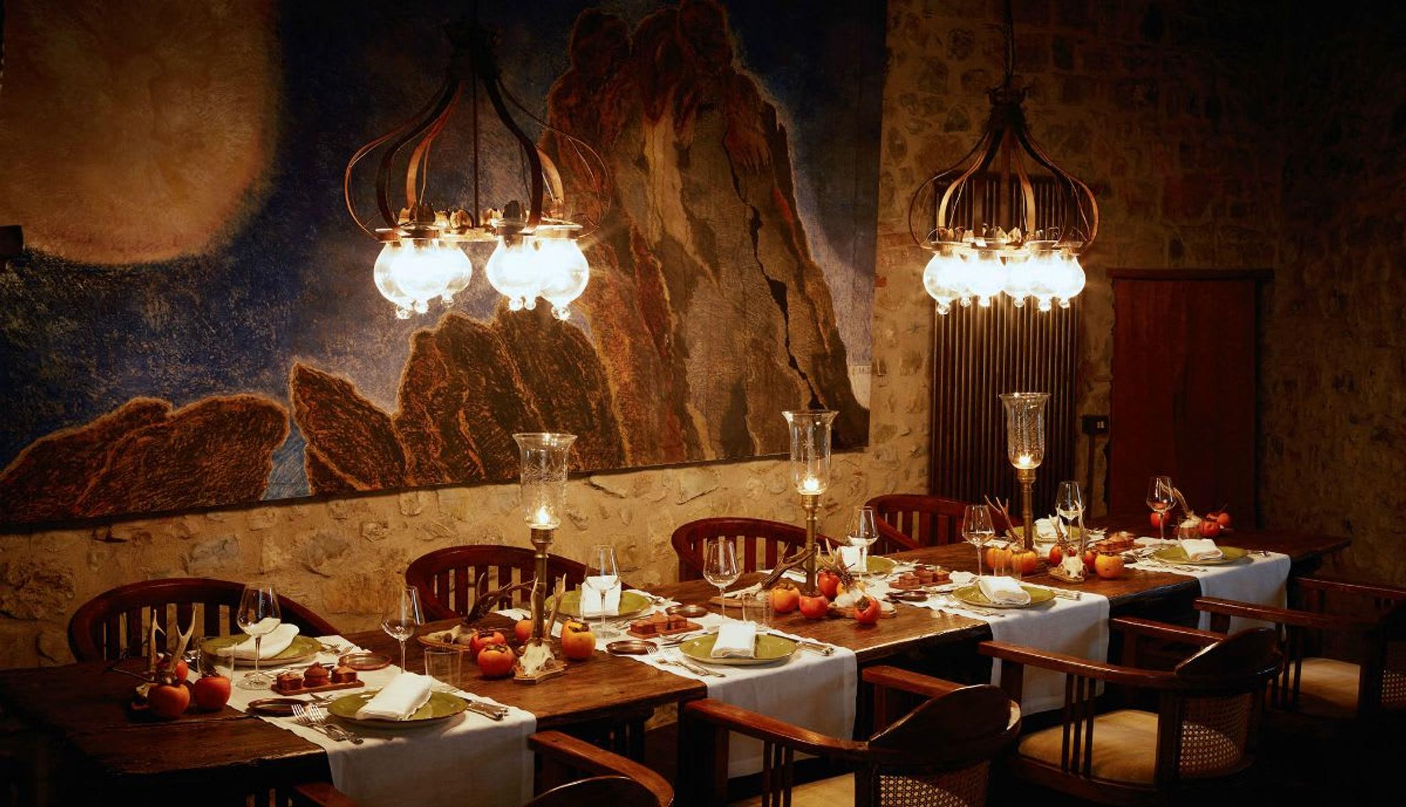 La Toscane est réputée pour sa cuisine authentique et fraîche et la cuisine du Castello di Vicarello dépasse même les attentes ; elle propose à ses hôtes des fruits et légumes cultivés biologiquement, du vin et de l'huile d'olive faits maison et un menu qui change tous les jours, servi dans une cour romantique en été ou au coin du feu en hiver.