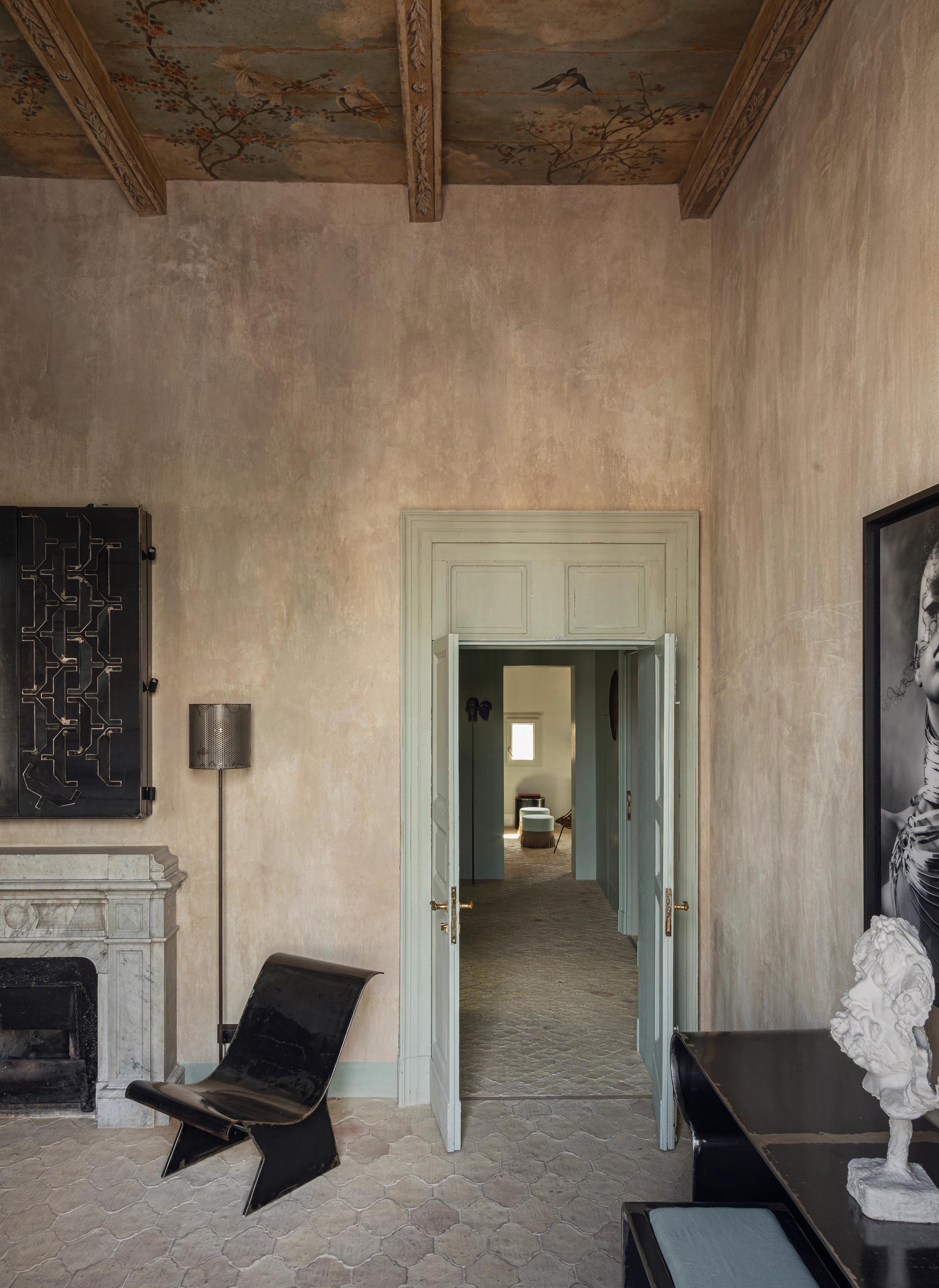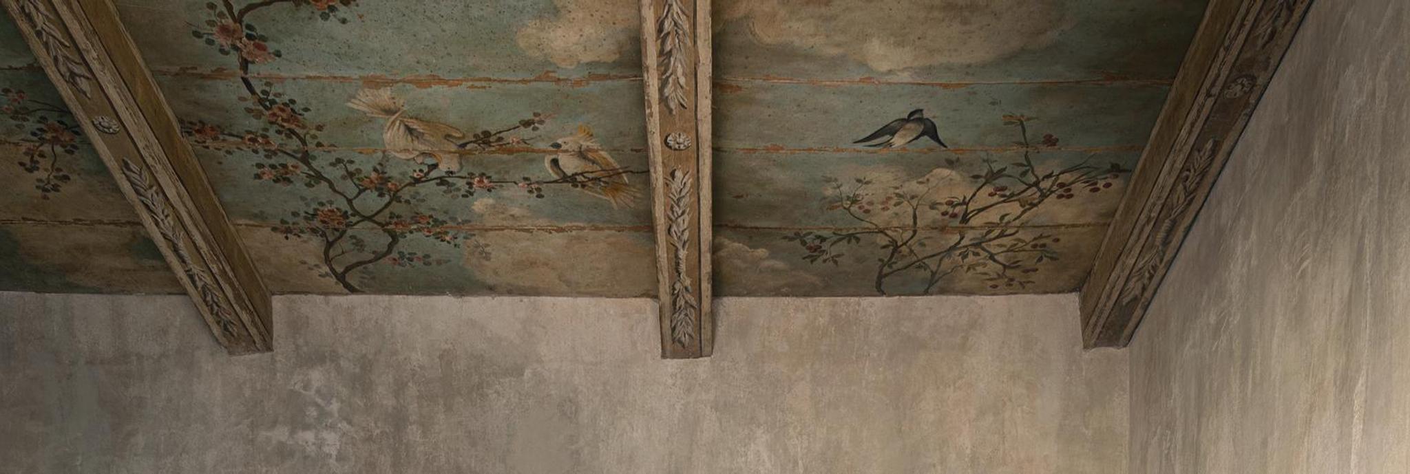 Incanto est une retraite aérée sous un plafond du XVIIIe siècle peint à la main, dont les fresques délicates font écho à la galerie des oiseaux du Palazzo Biscari. La palette pastel, le mobilier métallique personnalisé et les motifs naturels créent une sensation de flottement, d'élévation, de poésie et de modernité.