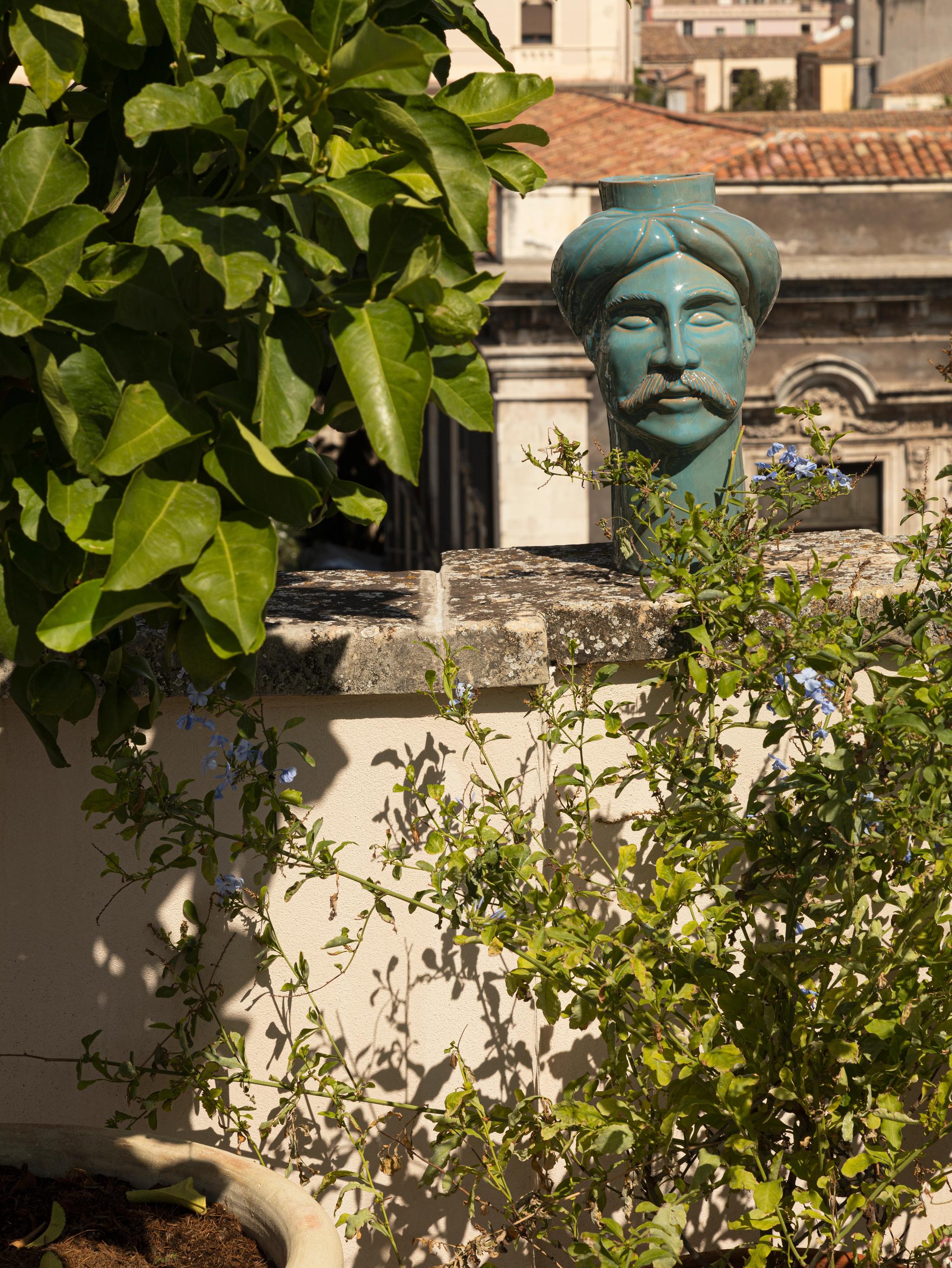 Au-dessus de tout cela se trouve le jardin sur le toit, une terrasse isolée offrant une vue panoramique sur les toits et les ruines. De là, l'amphithéâtre romain s'étend, intemporel et proche. C'est un espace pour le petit-déjeuner, la réflexion ou simplement pour laisser la lumière et l'air de la Sicile s'infiltrer.