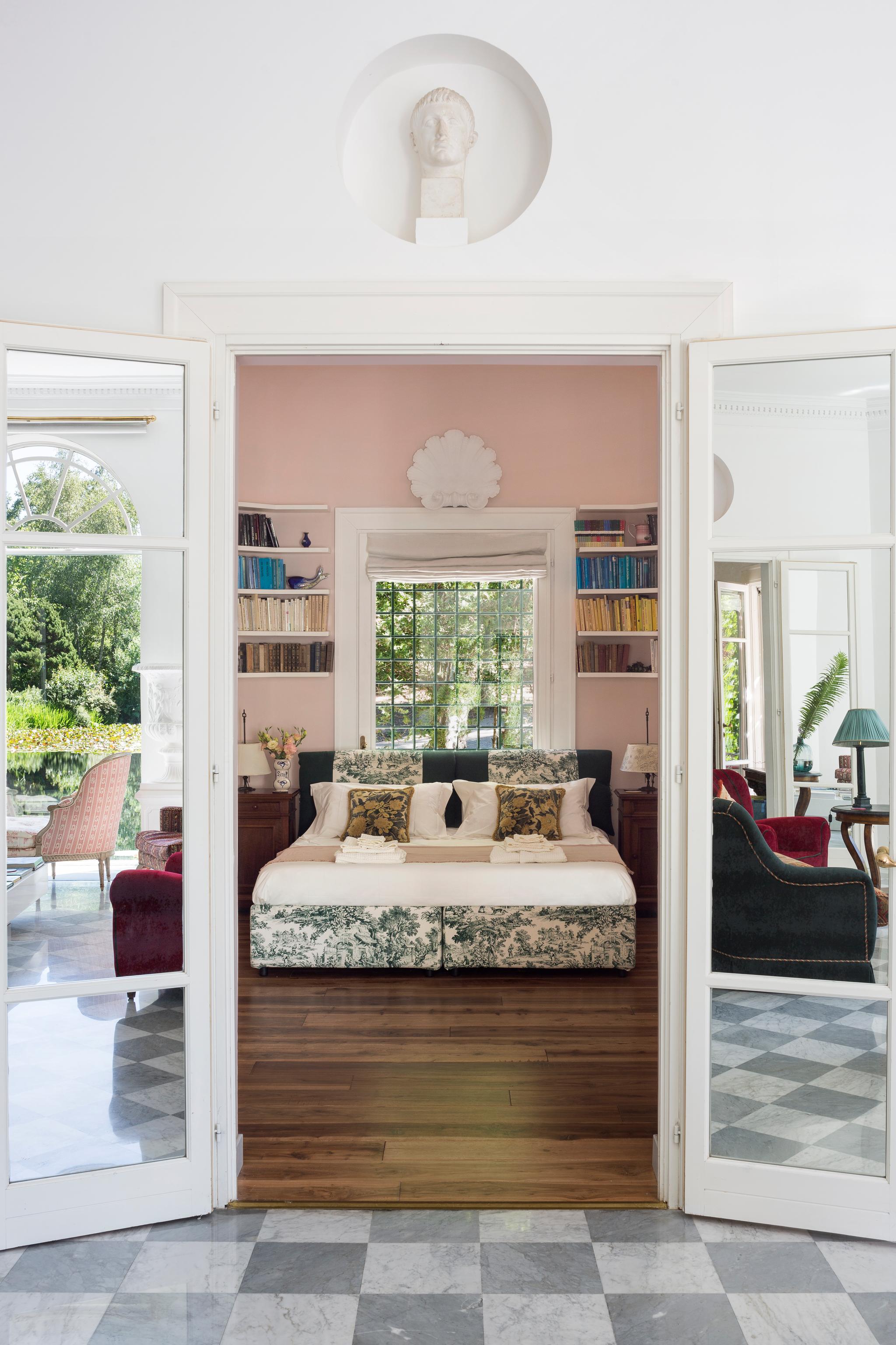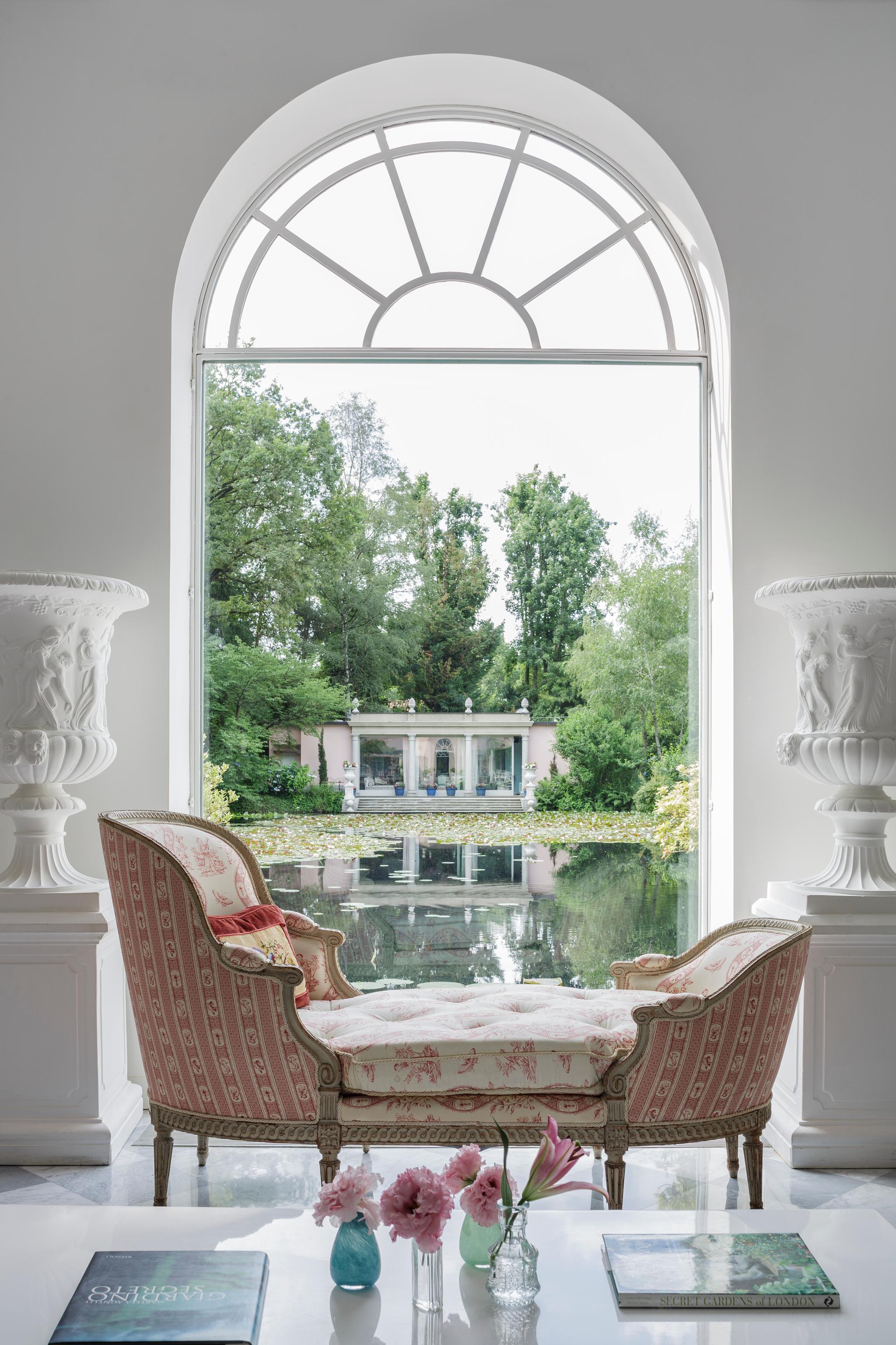 Derrière les murs roses des villas, les intérieurs sont meublés d'antiquités précieuses et de décorations élégantes qui rappellent à la fois le style original du bâtiment et l'environnement dans lequel il se trouve. La villa octogonale dispose d'un somptueux salon orné de grandes portes-fenêtres donnant sur le jardin et encadrant les belles statues classiques qui le décorent. Son aspect néoclassique représente l'une des deux âmes de La Foleia : romantique et plein de grâce, ses intérieurs sont caractérisés par de petites niches et des détails doux qui donnent à l'espace son charme distinctif.