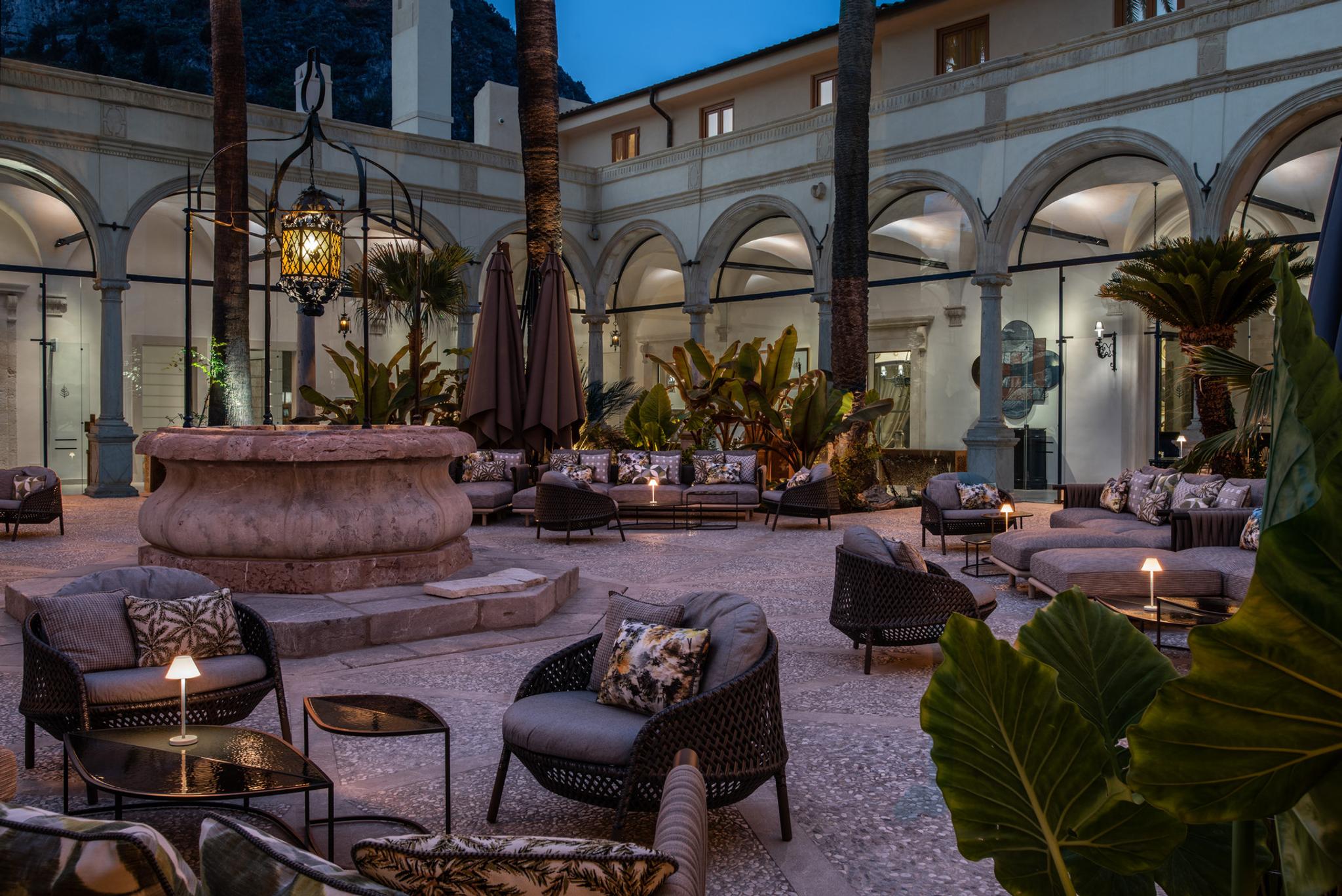 L'hôtel a conservé sa structure originale et les atmosphères monastiques suggestives de l'ancien couvent, avec des cloîtres, des fresques et des chambres créées à partir d'anciennes cellules. Le San Domenico Palace reste imprégné de son identité austère, avec une touche de glamour et de luxe authentique. Partout dans l'hôtel, vous trouverez des détails exquis rappelant la terre sicilienne : l'utilisation de la pierre de Modica et du marbre Port Laurent du Maroc capture l'esprit de la tradition architecturale locale et la rencontre entre la culture italienne et les influences arabes.