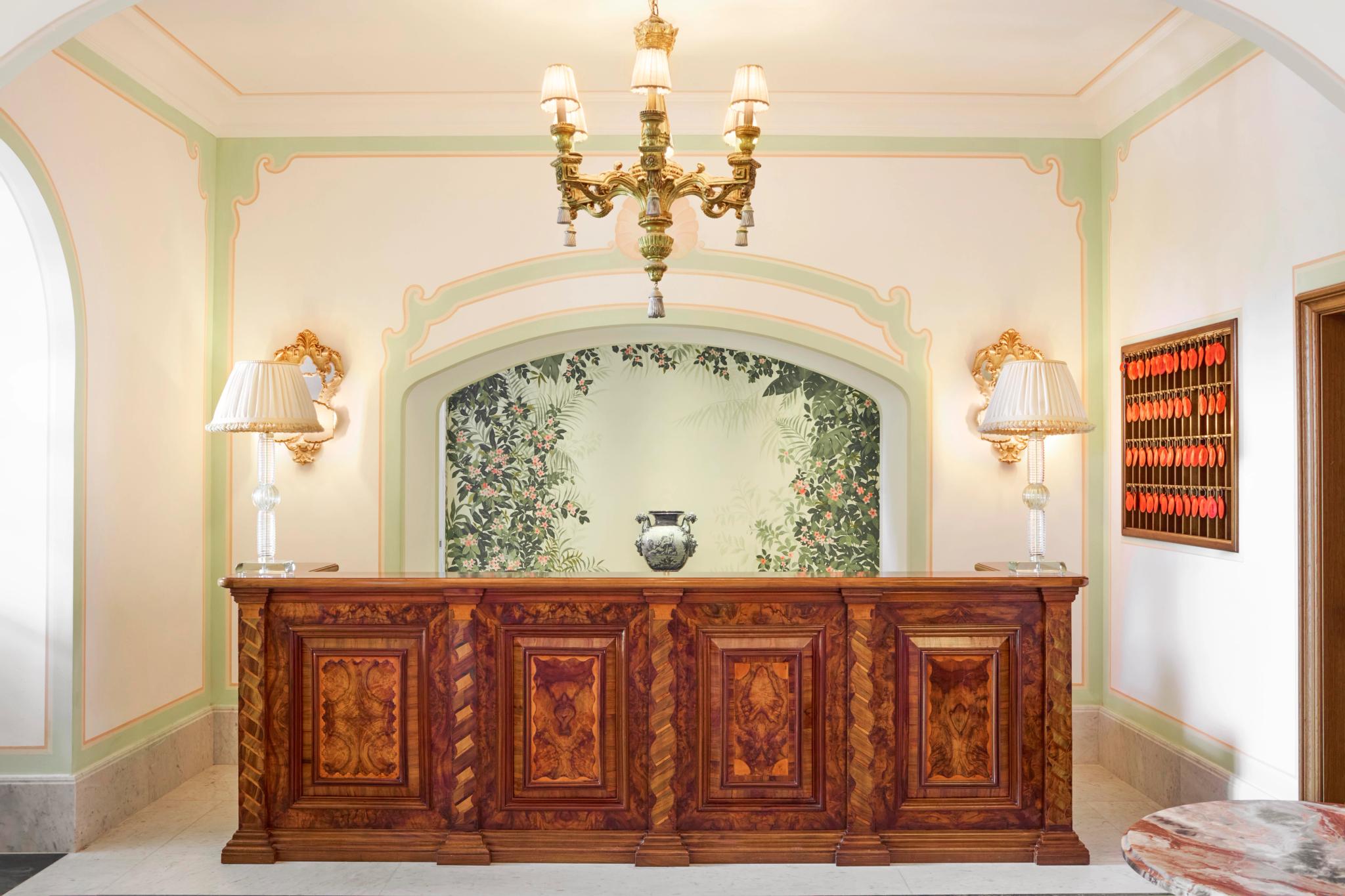 En entrant dans le hall d'entrée redessiné, les clients sont accueillis par un hommage sensoriel à la beauté naturelle et à l'histoire de la Ligurie. L'artisanat local occupe le devant de la scène : fresques botaniques peintes à la main, sols en terrazzo personnalisés dans le style génois et détails sculptés en marbre de Carrare et en pierre de Lavagna. Il ne s'agit pas de simples accents décoratifs, mais d'un dialogue intentionnel entre les matériaux de la région et l'élégance intemporelle de la Riviera italienne.