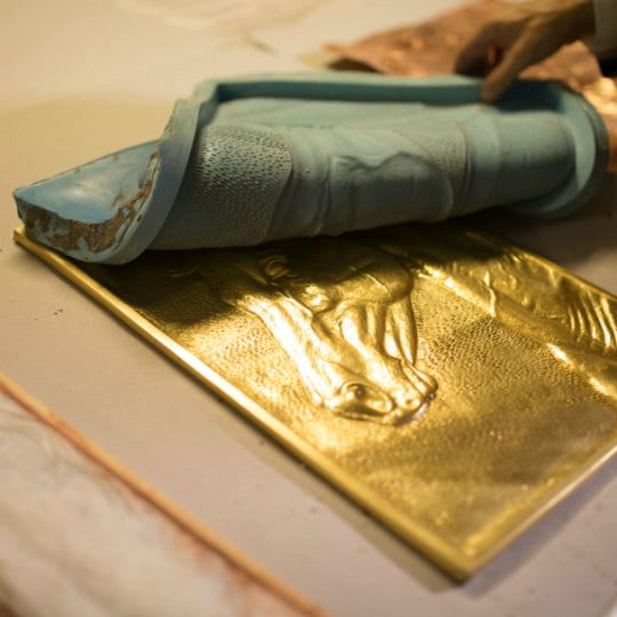 Le fondateur de D'Oro est Dino Salvatore Giorgio, un jeune entrepreneur d'une trentaine d'années qui dirige ce qui est aujourd'hui une famille de 50 personnes. Parmi eux, Alberto, un artisan de 70 ans qui a passé 53 ans de sa vie à relier des livres ; Maurizio, qui cisèle chaque moule en bronze ; Paola, la responsable de l'administration ; et Carla, qui gère notre espace de travail spécial.