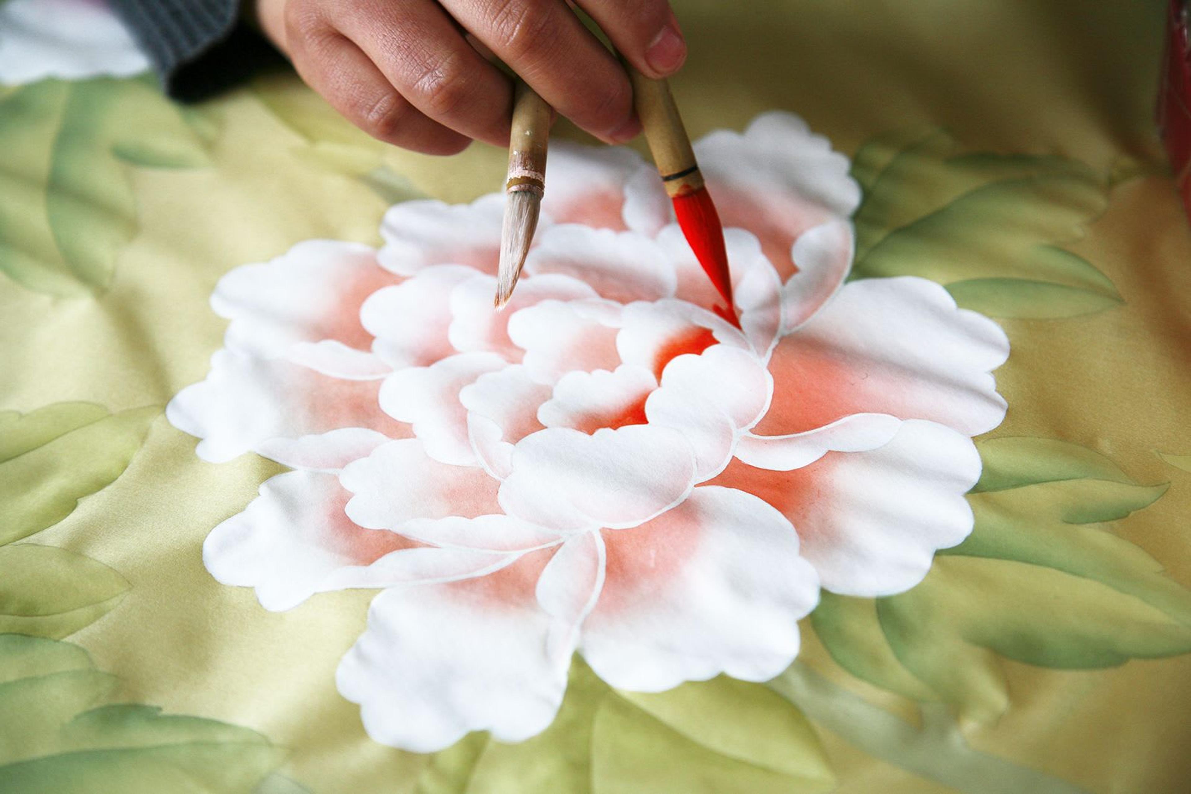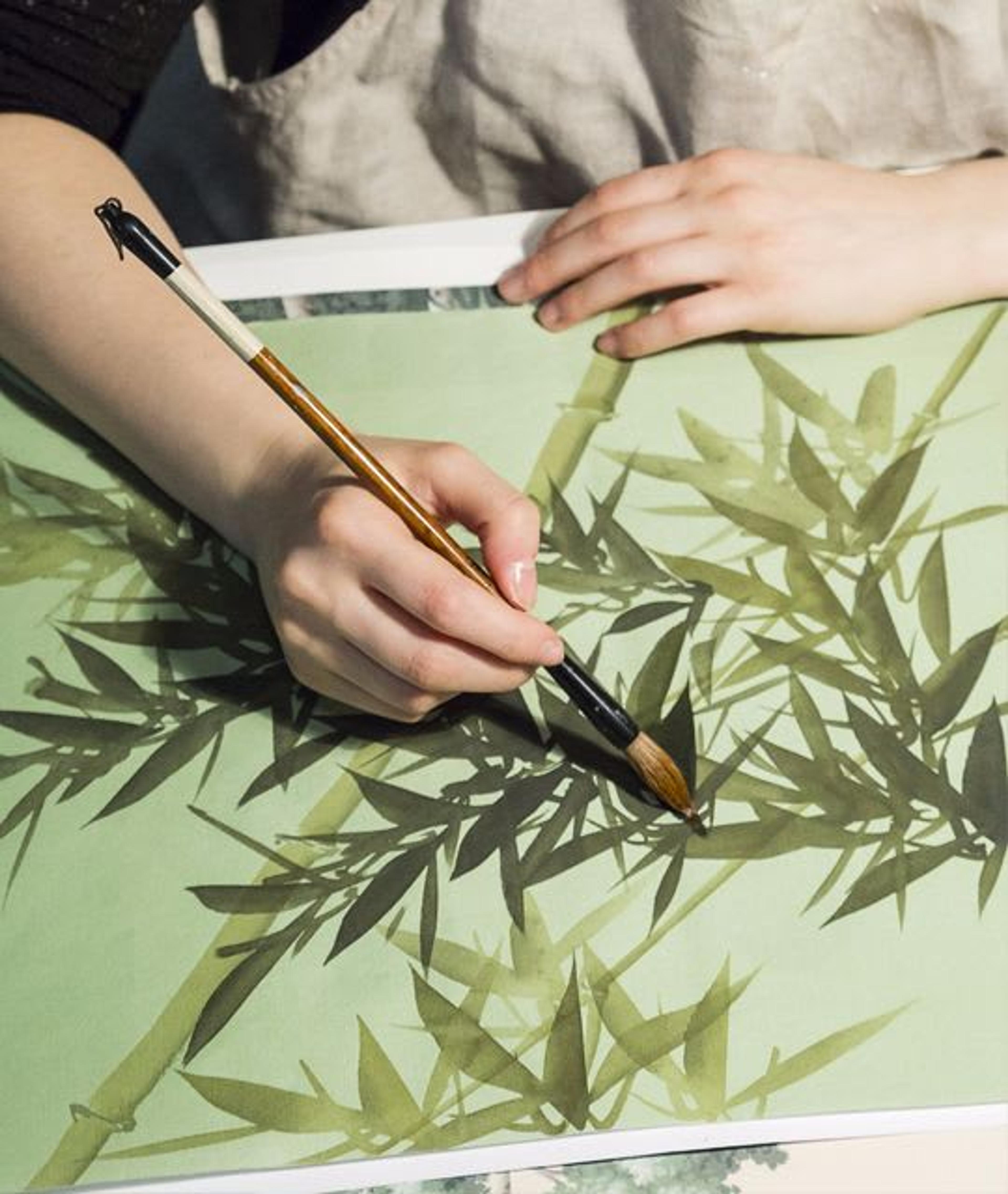 Vos superbes papiers peints sont entièrement peints à la main sur de la soie selon l'ancienne tradition chinoise. Pouvez-vous nous expliquer les étapes de production nécessaires à la création de produits aussi uniques et exclusifs ?
