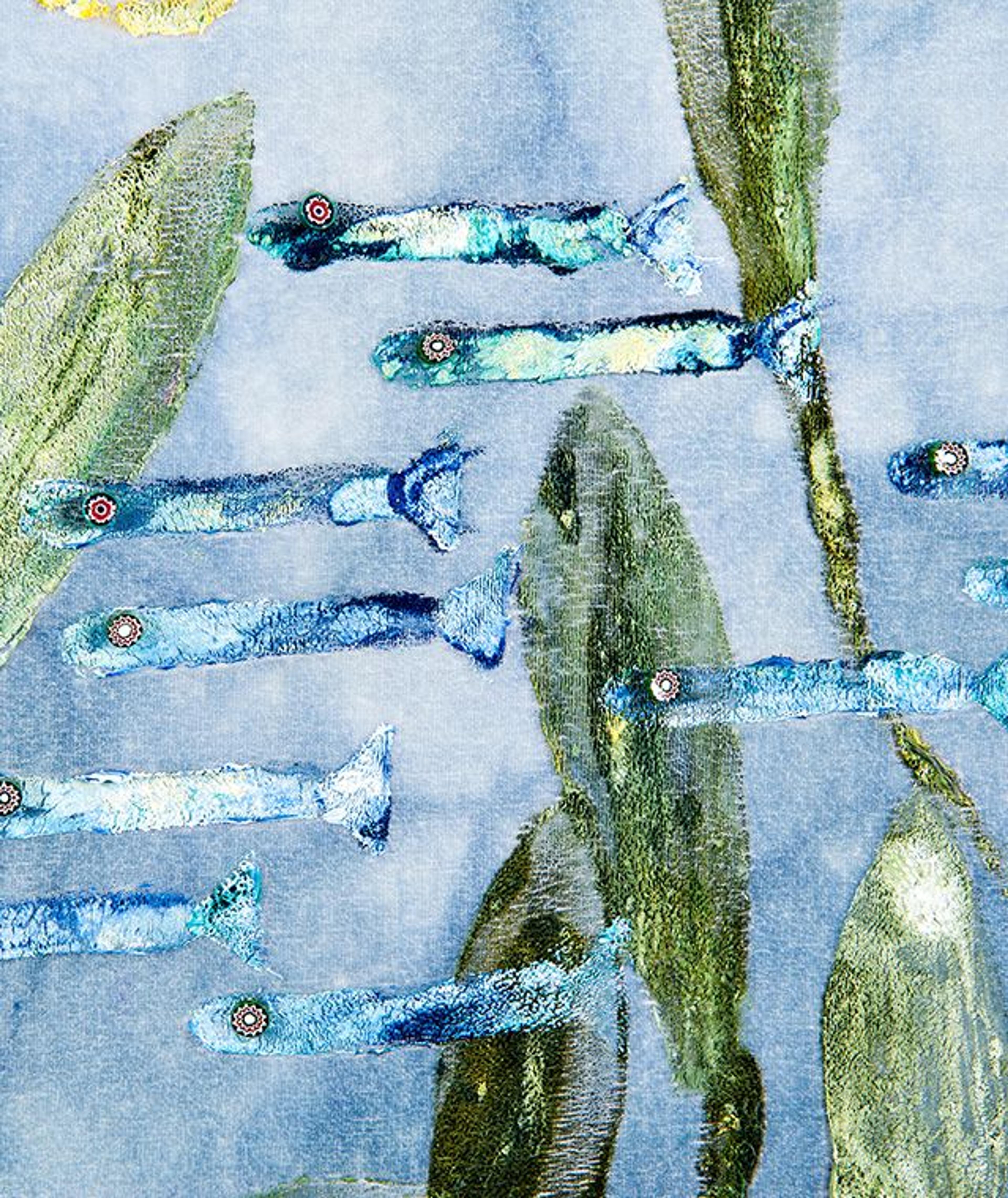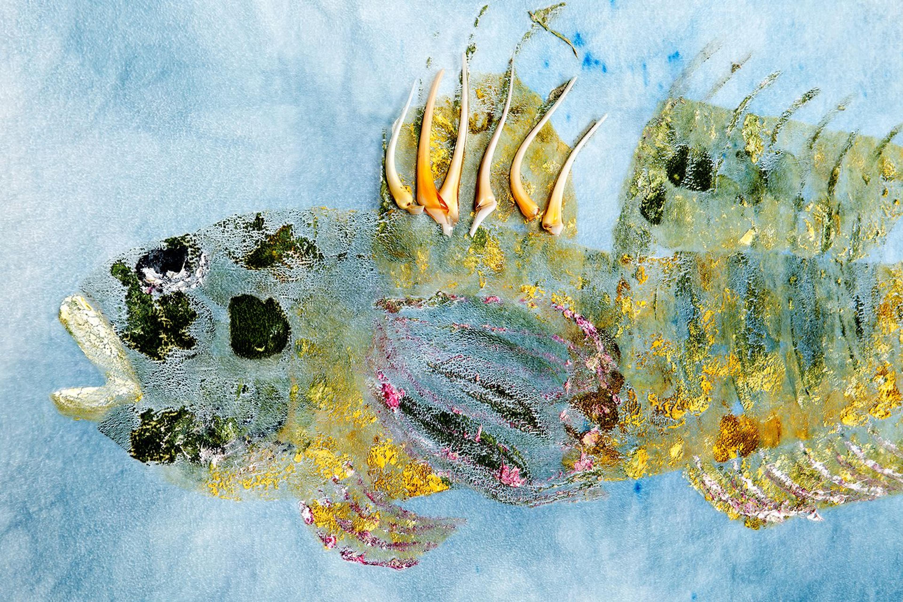 Parfois, les images apparaissent déjà complètement formées dans mon esprit, sans que je les aie pensées ; d'autres fois, je suis inspirée par une couleur particulière, ou par le détail d'un objet, ou d'une photographie. Mais presque toujours, mon idée commence à prendre forme à partir de la mer, de ses couleurs et des mouvements sinueux des poissons.