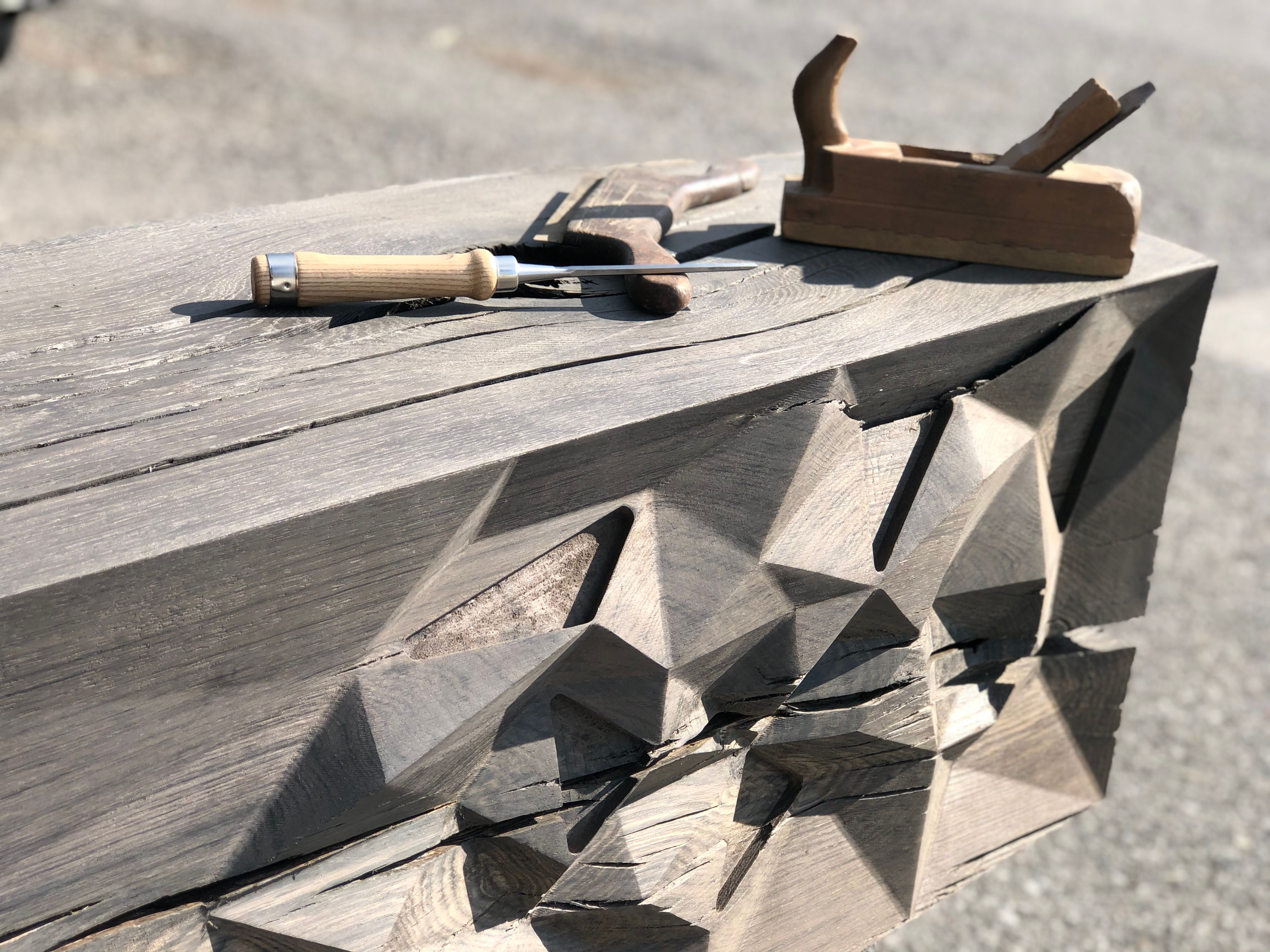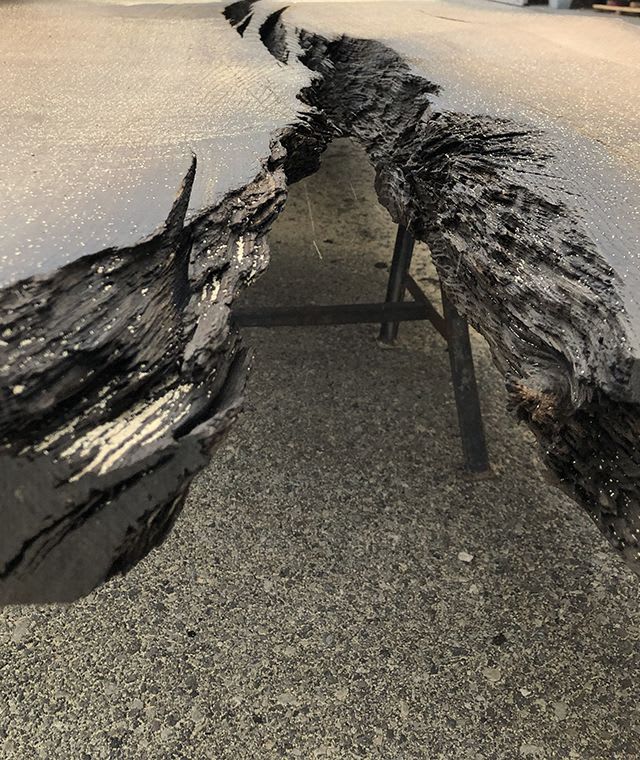 Larichesse de l'histoire et du patrimoine du bois fossilisé est un élément clé de vos créations, une union d'éléments modernes et d'une forme sculptée par le temps qui révèle des histoires d'époques révolues. Quel est le processus de travail de ce type de bois ?