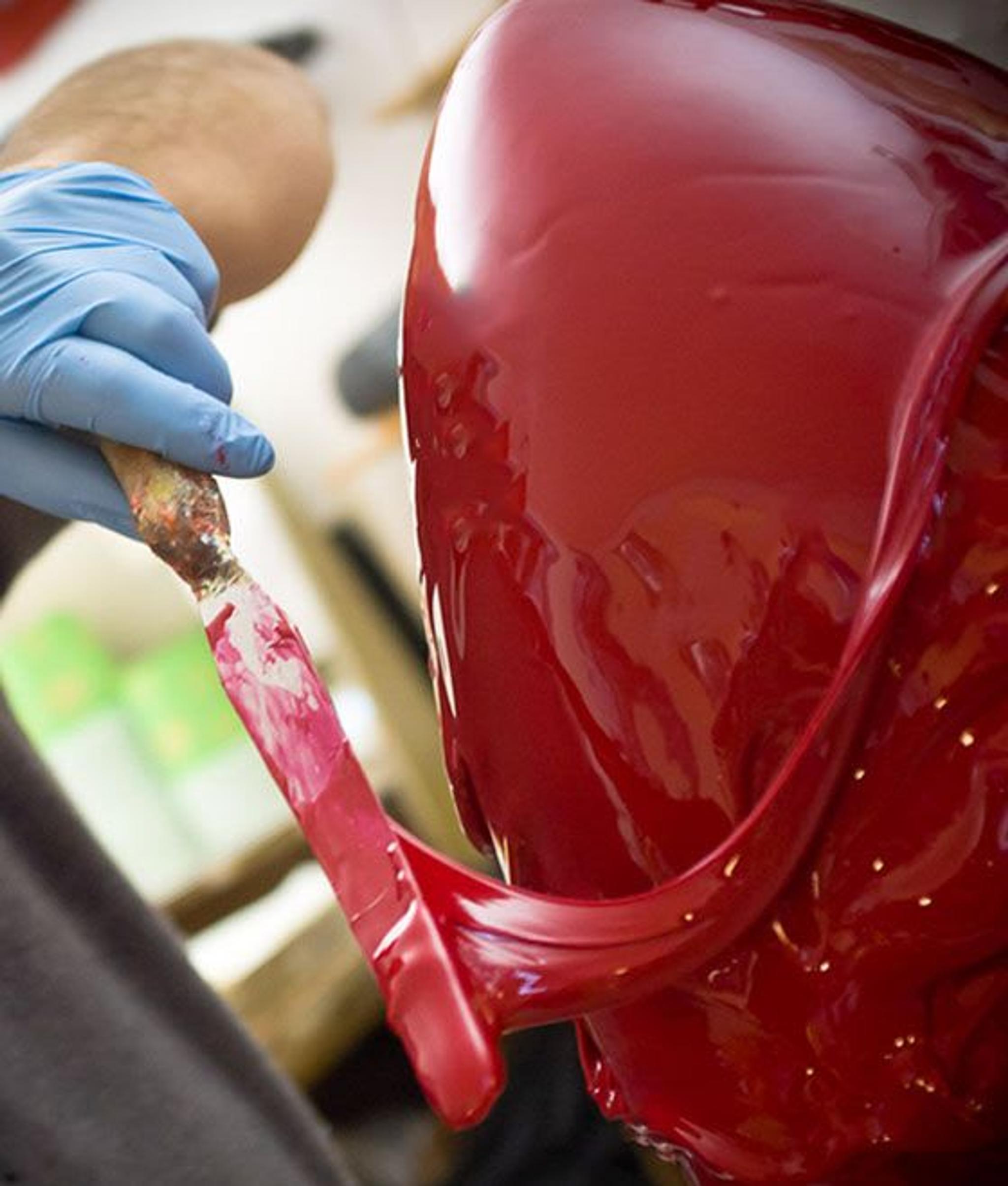 Les techniques et les types de résine utilisés varient en fonction de la pièce. Des moules de différentes formes sont utilisés en fonction du type d'objet à créer. La résine est ensuite préparée en y mélangeant des pigments de couleur, puis le processus se poursuit par des moulages, des extrusions et d'autres gestes jusqu'à atteindre la pureté du processus sculptural, en utilisant la résine comme de l'argile.