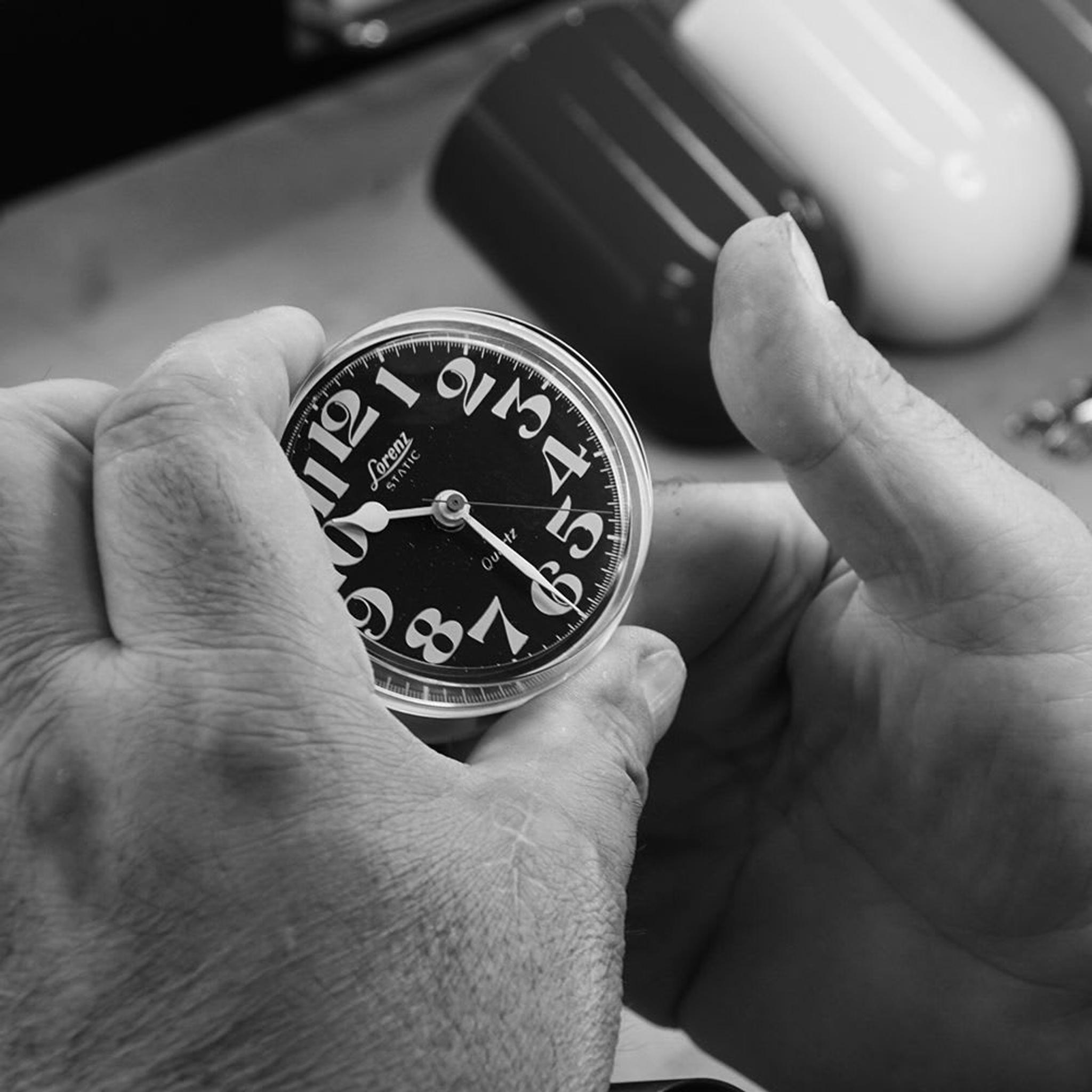 Cette nouvelle édition de la spectaculaire horloge de table Static conçue par Richard Sapper, qui a remporté le prix Compasso D'Oro en 1960, appartient à une série singulière d'horloges de table disponibles en différentes couleurs. Fabriquée à la main en acier inoxydable, elle présente la même silhouette innovante que le design original, reposant de manière oblique sur le plateau de la table et orientée vers le haut. Le corps du boîtier est en acier inoxydable laqué avec de l'émail poli de couleur cerise.