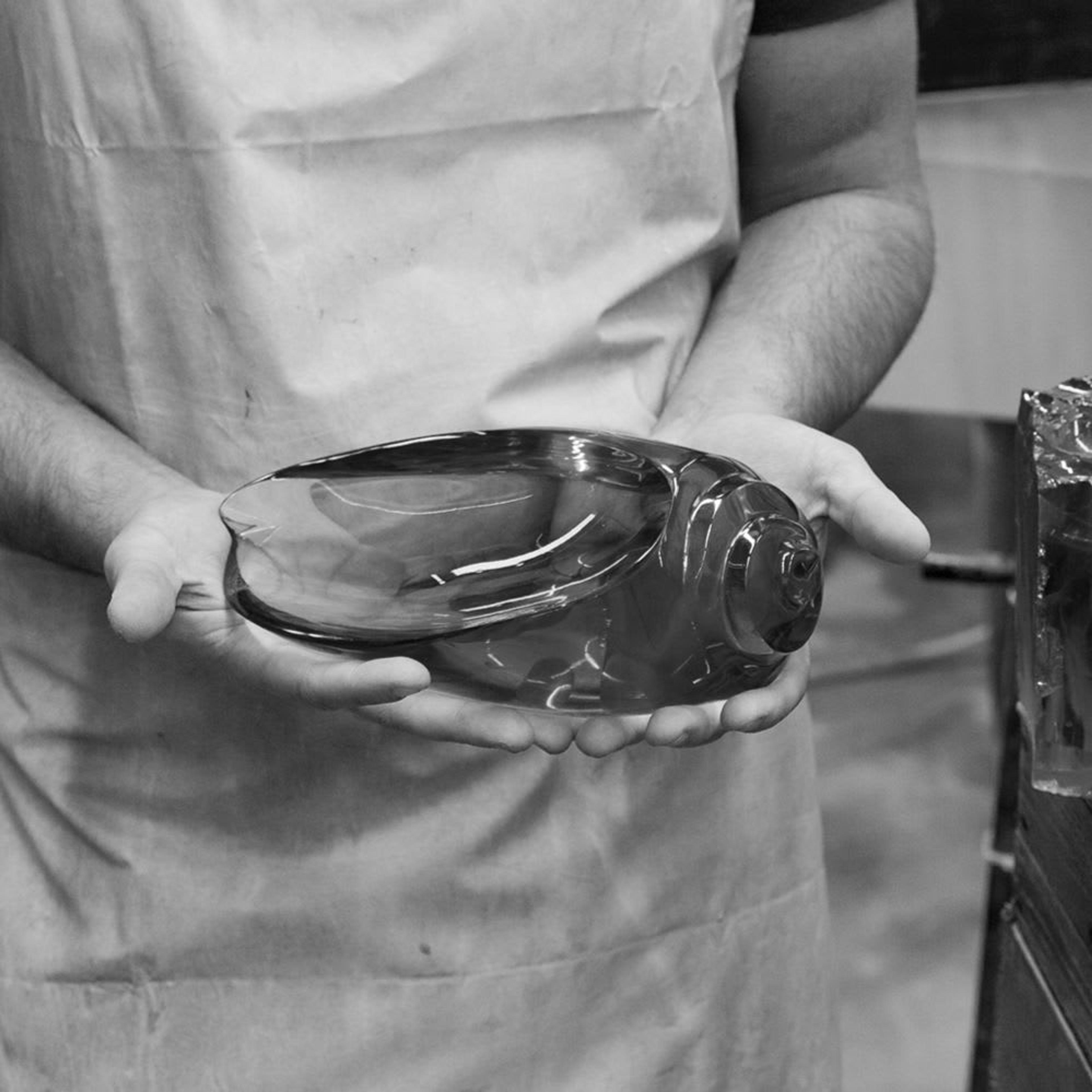 I fondatori di Ghirò Studio, Michele e Domenico Francesco Ghirò, traggono la loro ispirazione creativa dalla flora e dalla fauna, dando vita a pezzi tanto fantasiosi quanto raffinati. Questo team di padre e figlio è sempre alla ricerca di nuove forme e materiali da utilizzare nei loro pezzi prodotti con cura. Ogni oggetto è creato da blocchi di cristallo e vetro dai colori intensi, in particolare le tonalità di blu che si trovano nelle acque del Mediterraneo, che vengono accuratamente scolpiti in increspature, onde, globuli e altre forme biomorfiche.