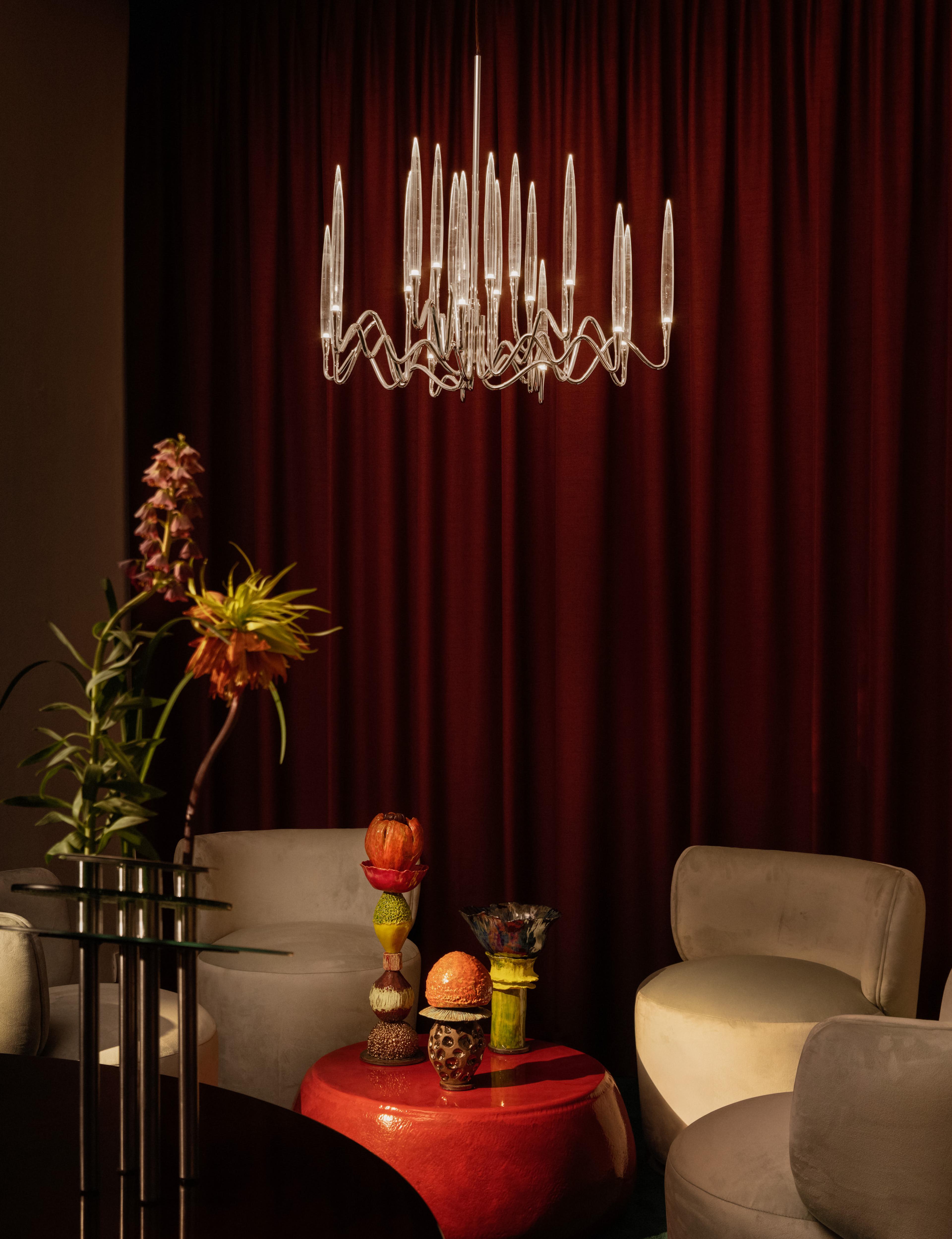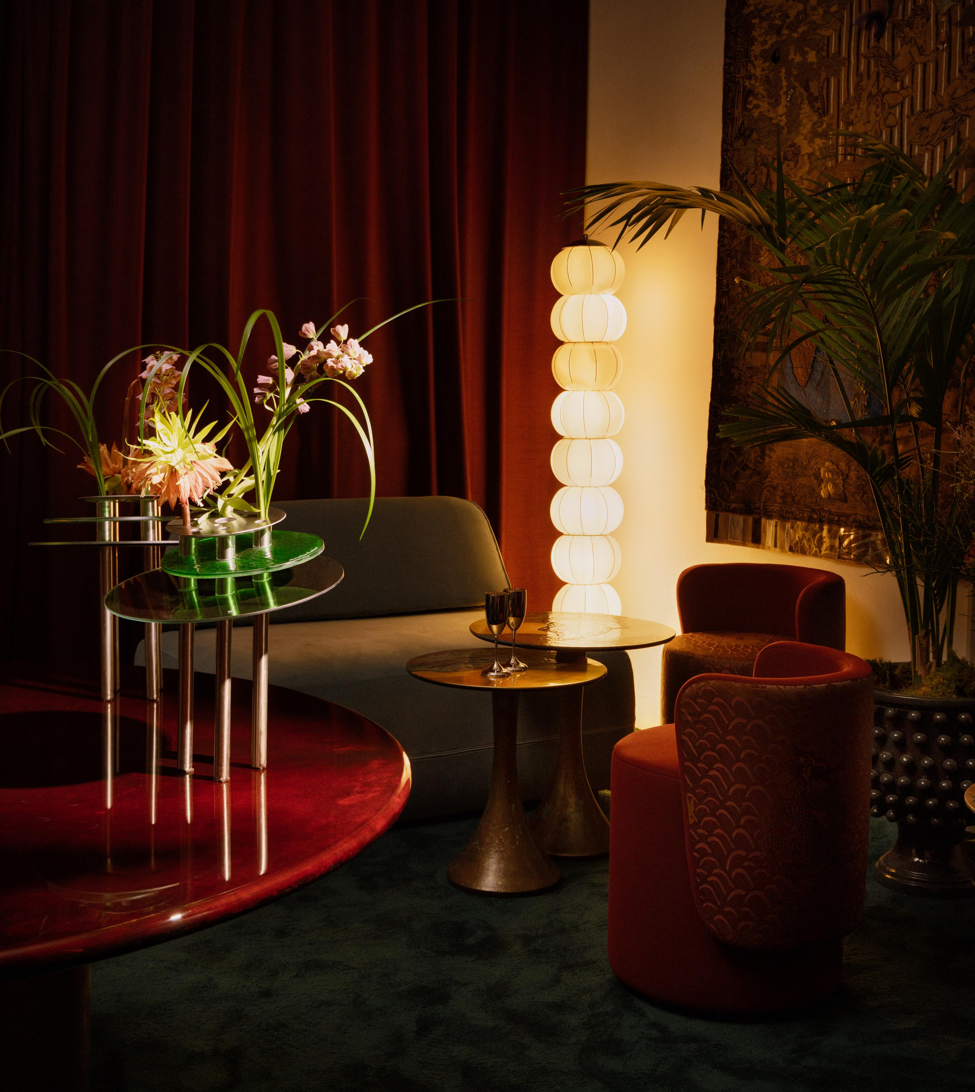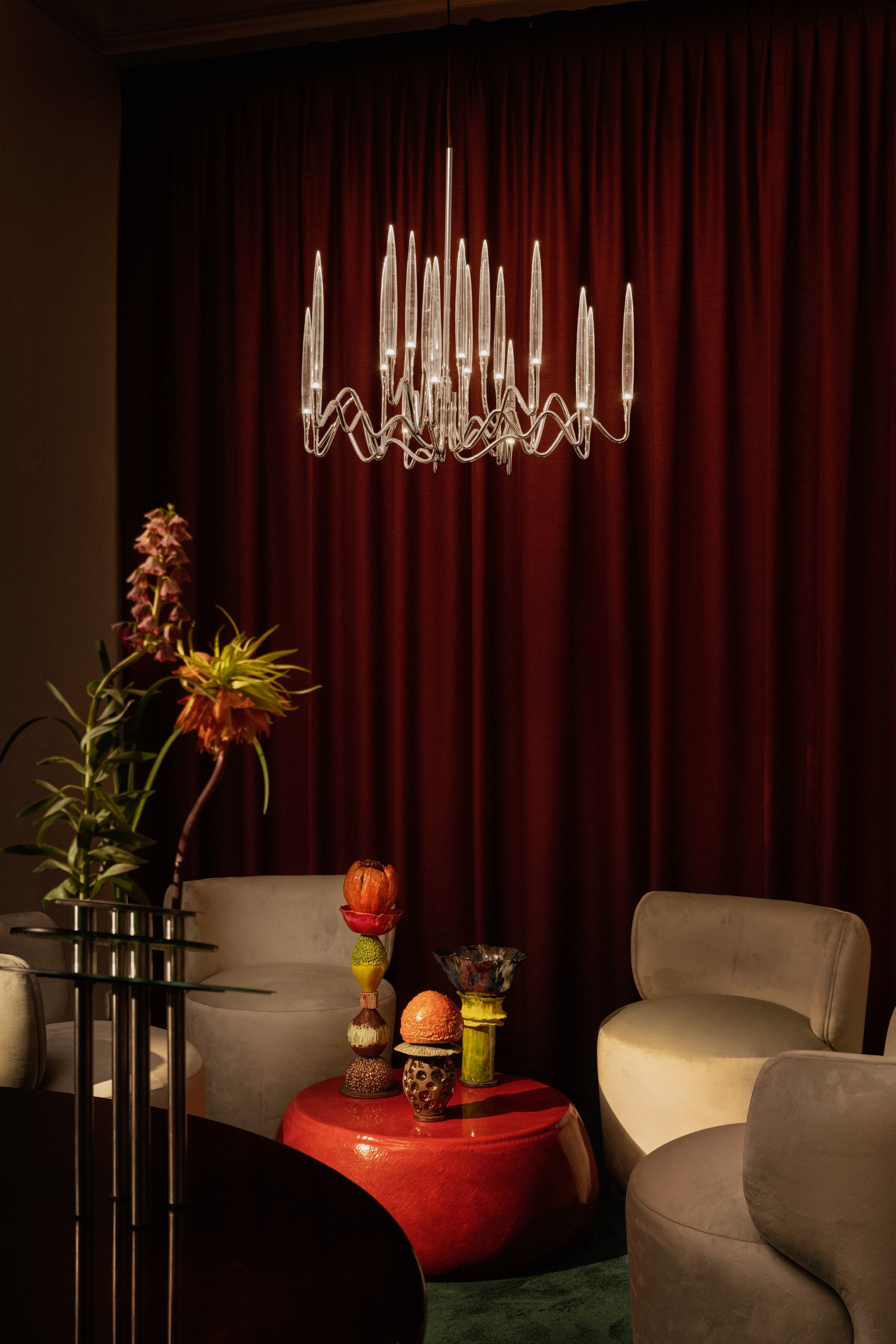 Come un tranquillo interludio, The Lounge è stato progettato per accogliere i clienti in uno spazio dove il lusso si ammorbidisce e diventa intimo. Non si tratta di una semplice stanza, ma di un invito deliberato a fermarsi e a lasciare che i propri pensieri si svolgano indisturbati. Tessuti e materiali raffinati, abbinati a una palette di colori tenui, preparano il terreno per un viaggio attraverso l'artigianato italiano che è allo stesso tempo vivace e tranquillo. I colori, ispirati all'arte contemporanea, includono blu polverosi, verdi profondi e rossi intensi, che si fondono senza soluzione di continuità per evocare il mistero sereno di un bosco fatato o la nostalgia dei ricordi d'infanzia. Infine, il lampadario decentrato immerge la stanza in una luce eterea e delicata, attirando lo sguardo verso la scoperta di ogni dettaglio inaspettato.