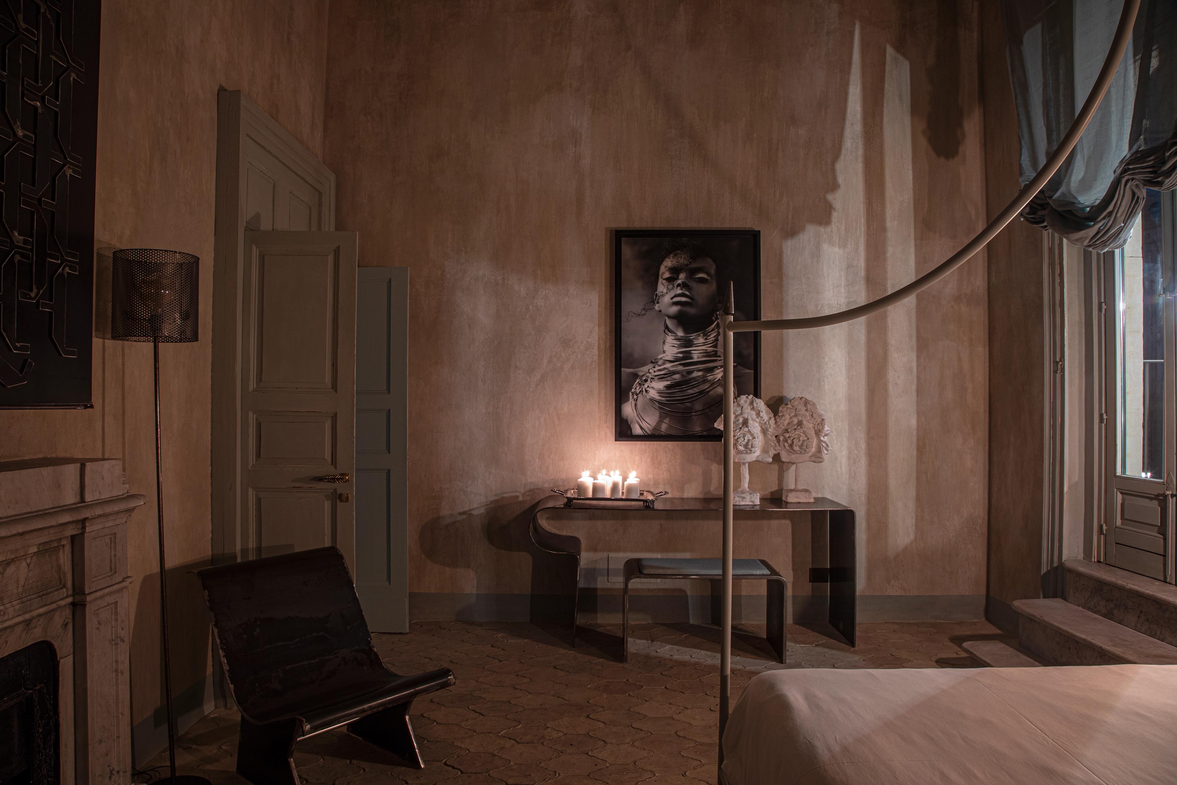 Incanto è un rifugio arioso sotto un soffitto del XVIII secolo dipinto a mano, i cui delicati affreschi riecheggiano la Galleria degli Uccelli di Palazzo Biscari. La tavolozza dei colori pastello, gli arredi metallici personalizzati e i motivi naturali creano una sensazione di galleggiamento, di elevazione, di poesia e di modernità.