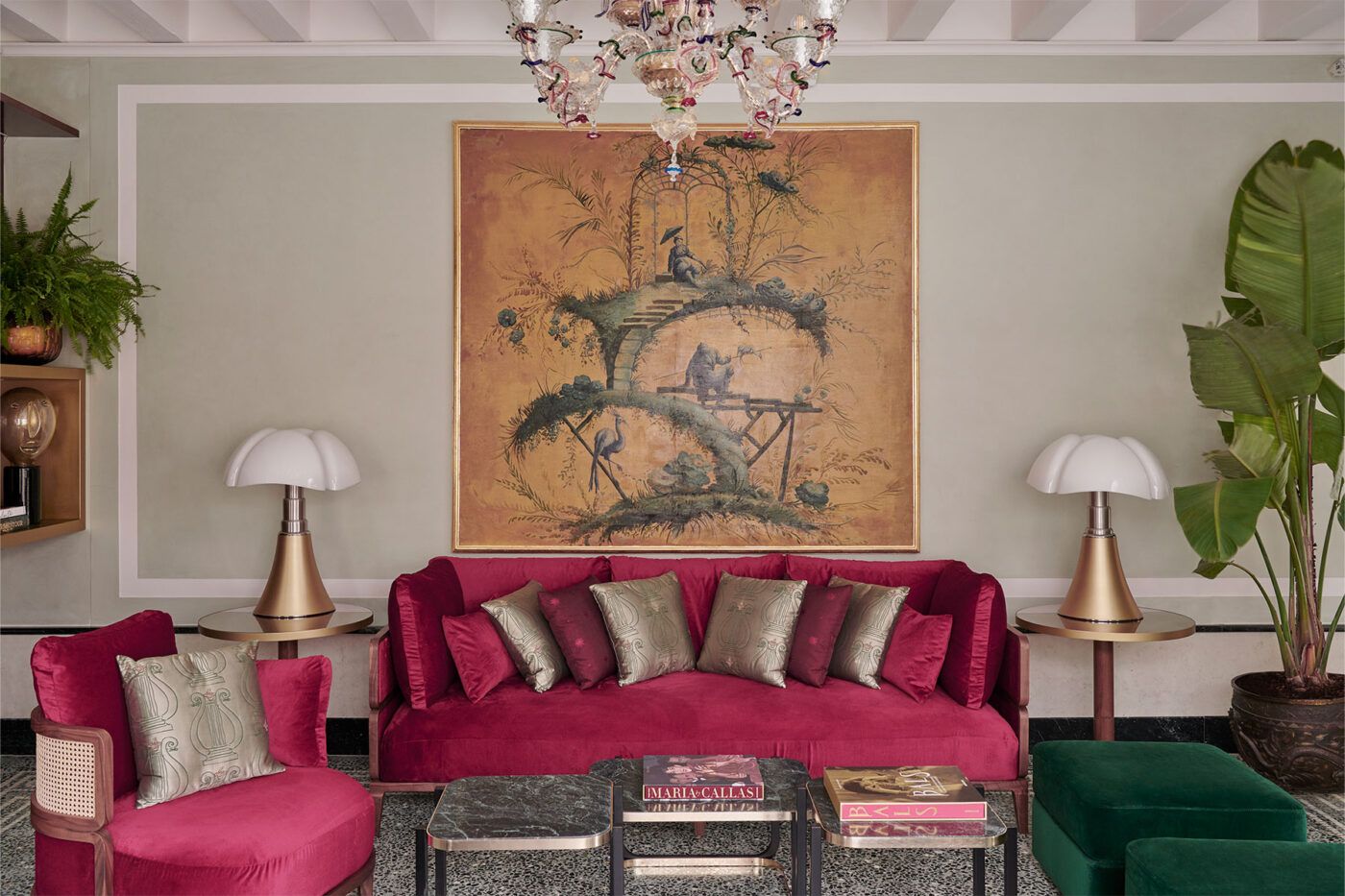 L'ingresso è illuminato da splendidi lampadari in vetro veneziano, mentre i pavimenti raccontano una storia di artigianato tramandata da generazioni. Realizzati a mano con una miscela di ciottoli di marmo e cemento, ogni pezzo di marmo è stato scelto e disposto meticolosamente per creare disegni intricati. Il design dell'hotel è un vero capolavoro di architettura e arte, che offre agli ospiti un'esperienza lussuosa e unica, plasmata dall'esperienza di designer e architetti di talento.