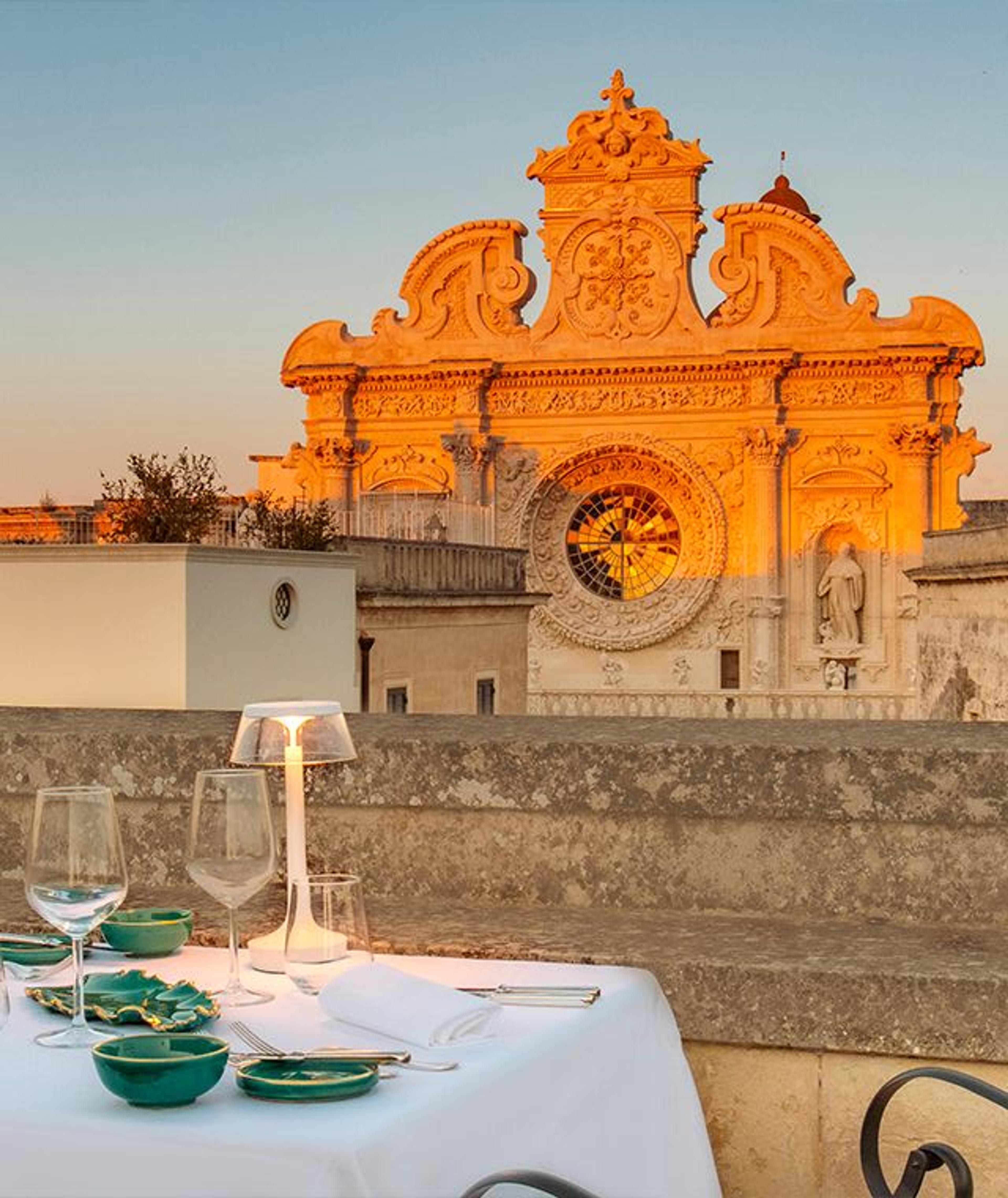 Il soggiorno al Patria Palace non è completo senza assaporare il gusto delle specialità pugliesi del Ristorante Atenze. La terrazza dedicata è un angolo di paradiso da cui si gode una delle più belle viste della città, una posizione privilegiata nel cuore di Lecce con la maestosità dell'arte barocca a portata di mano. Sapori ricchi e autentici tipici del Sud Italia si alternano a ispirazioni più internazionali, caratterizzate da ingredienti locali di alta qualità.