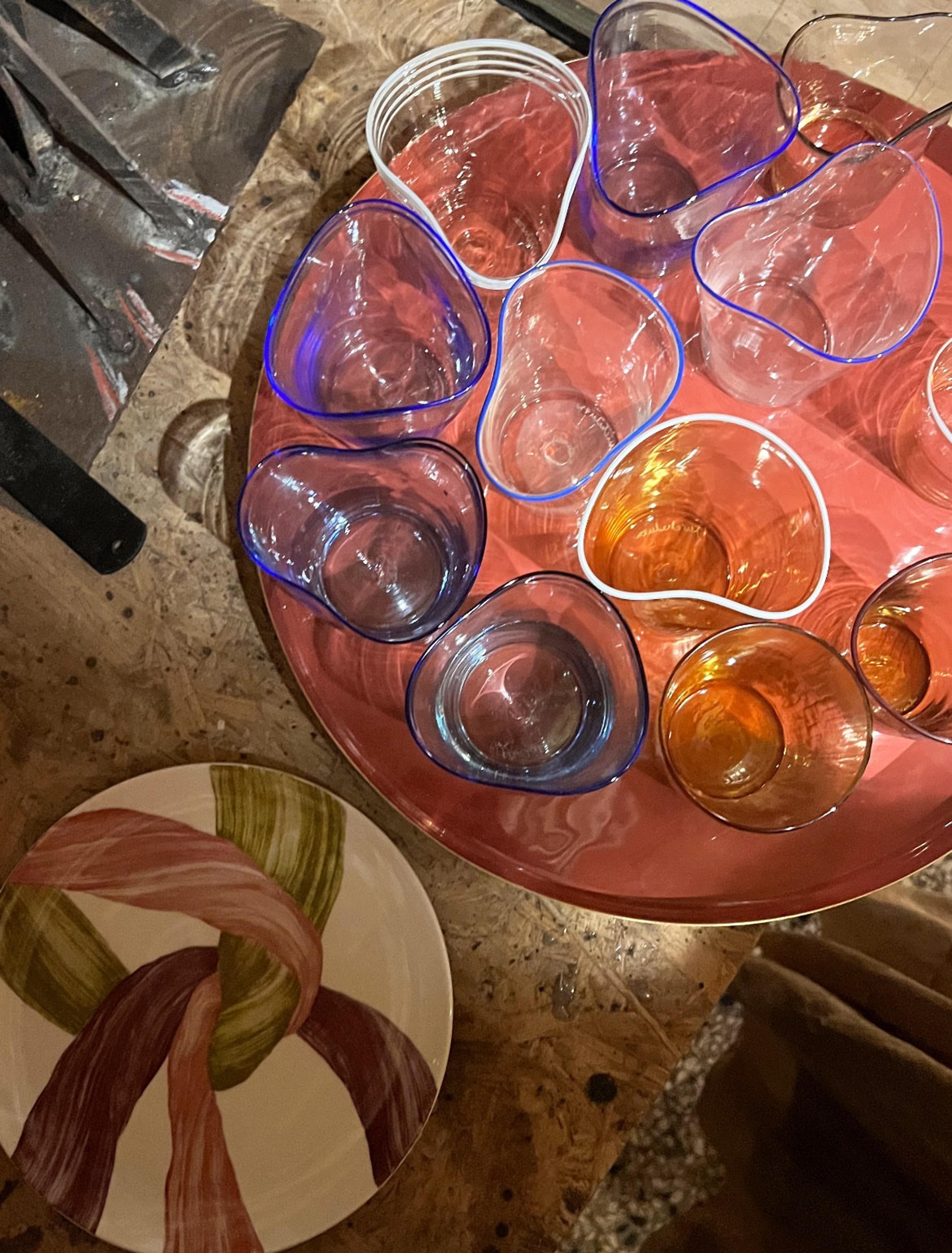 Micheluzzi Glass: Benedetta, Margherita e Bona cercavano uno spazio a Venezia per organizzare un evento conclusivo di Homo Faber, e noi abbiamo subito pensato di collaborare ospitando l'evento nel nostro negozio. Ci siamo immediatamente immaginate i nostri bicchieri accostati ai piatti Paravicini come un’accoppiata perfetta. Artemest aveva già intuito questa affinità, abbinando i piatti Paravicini ai nostri vetri in un precedente evento, rendendo così naturale continuare a esplorare questa collaborazione.