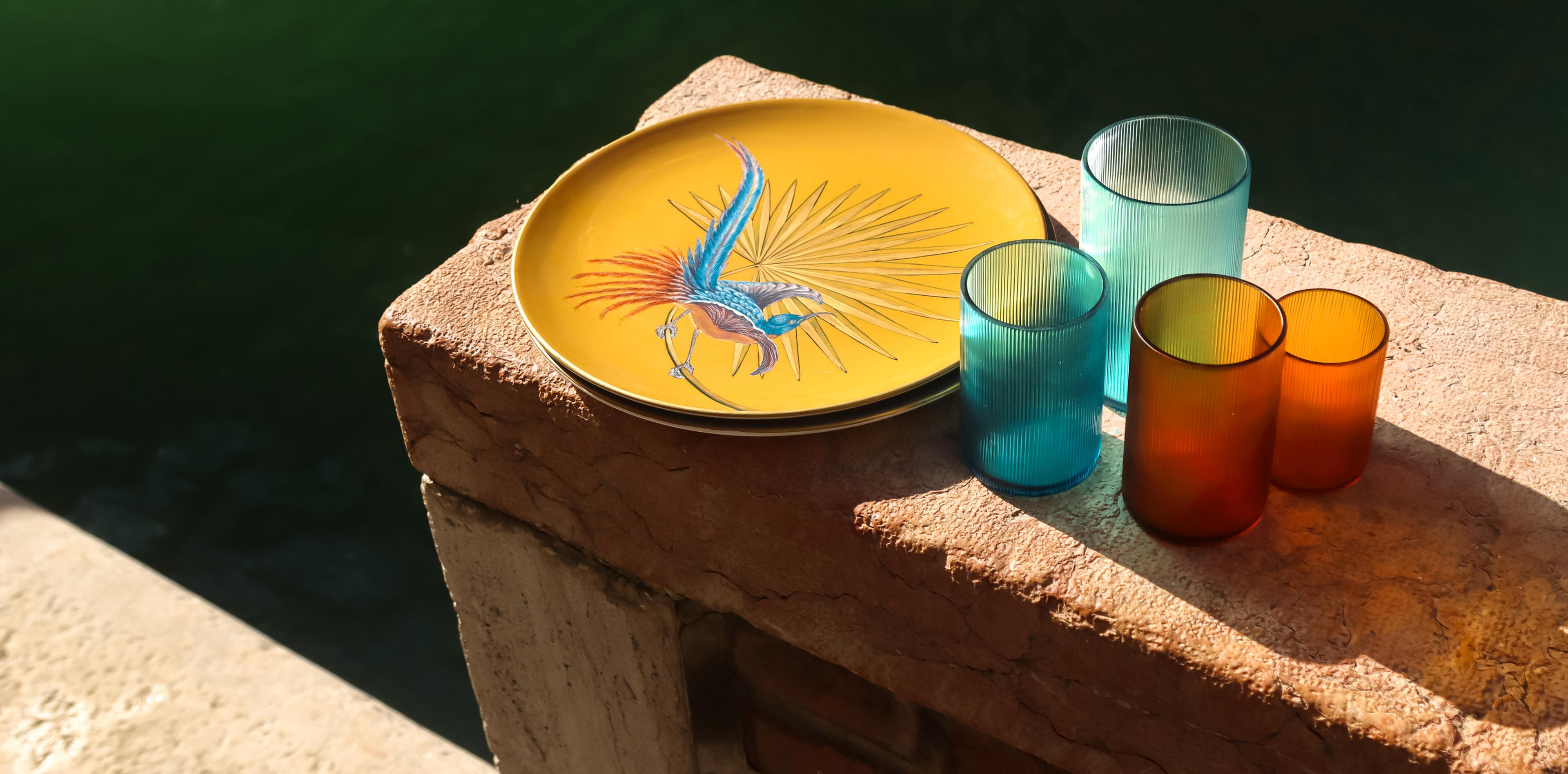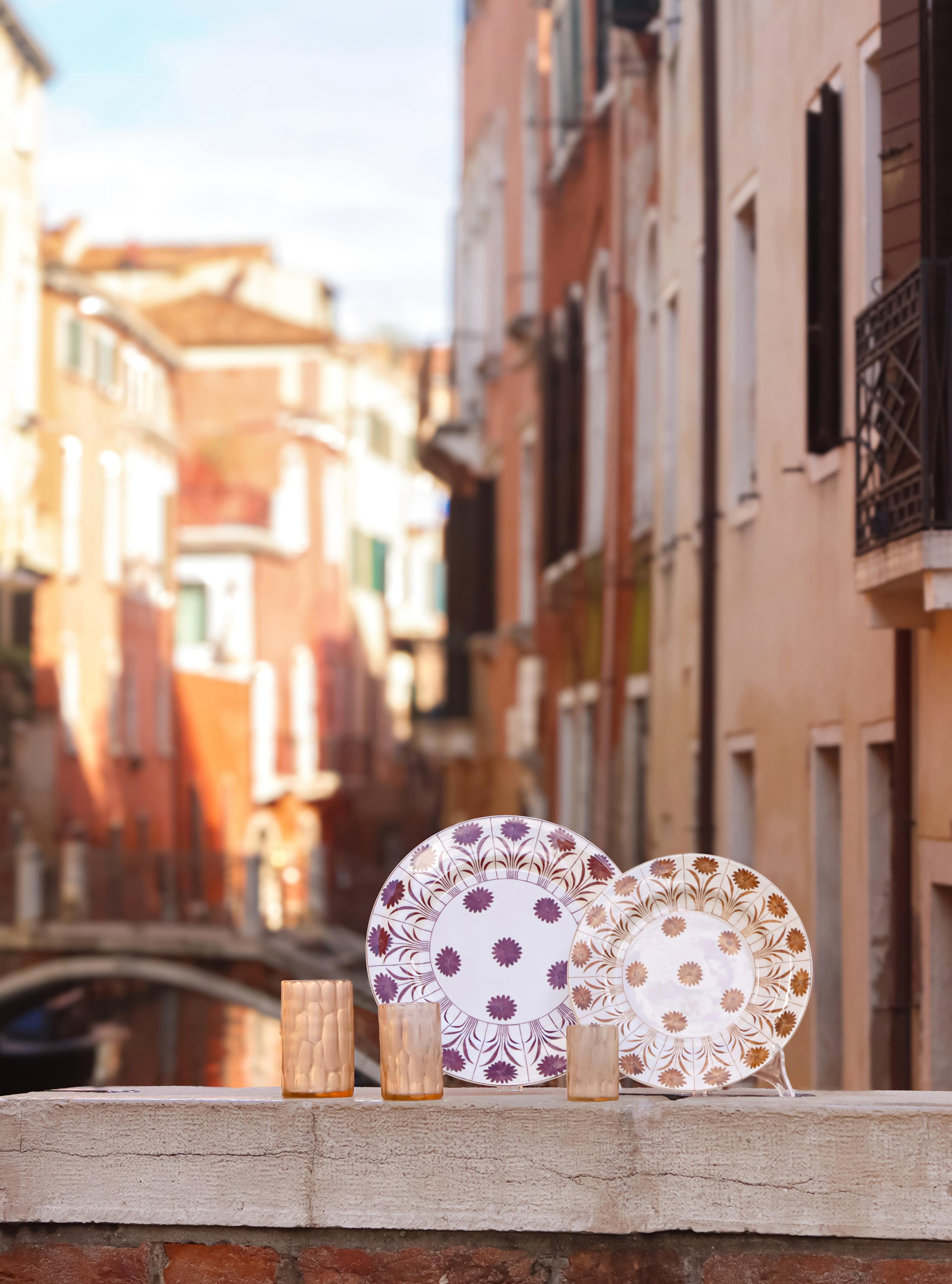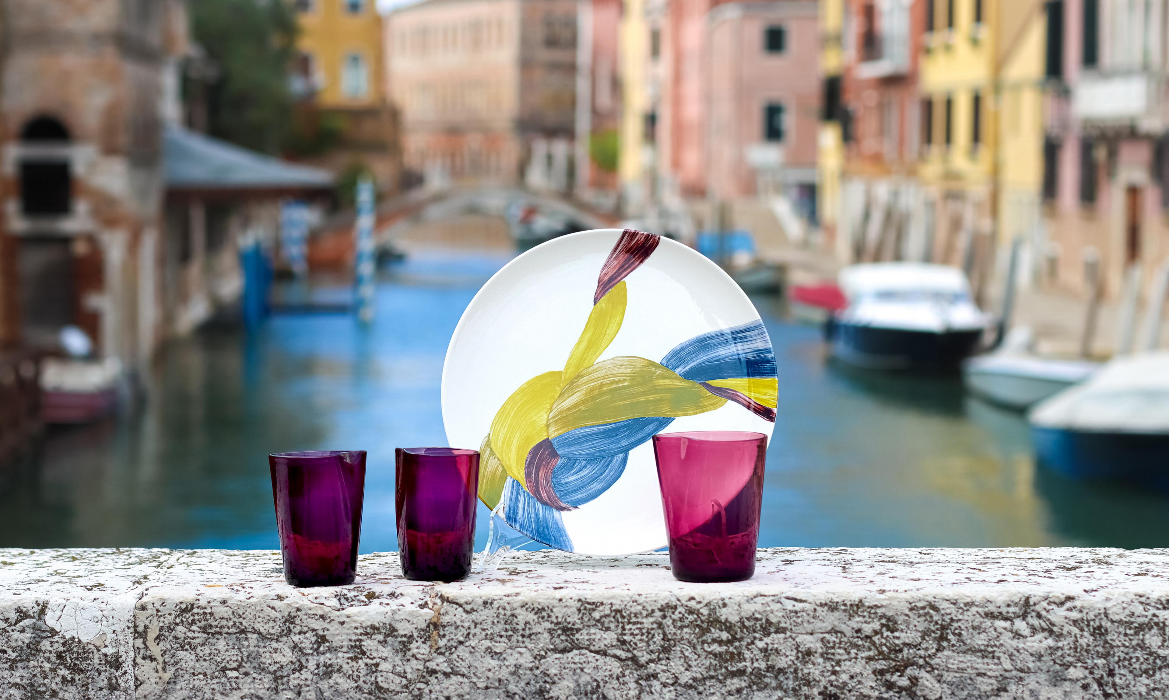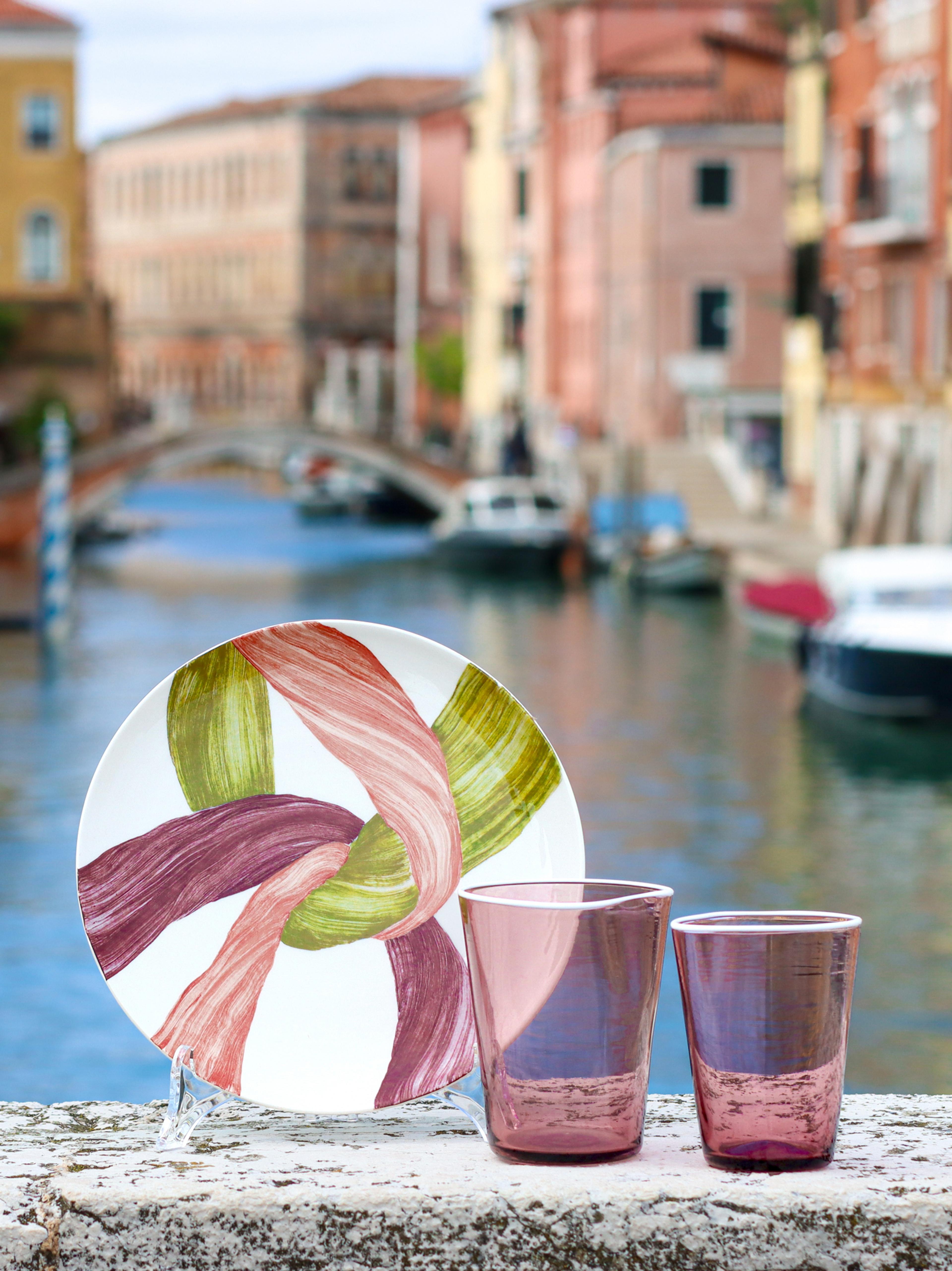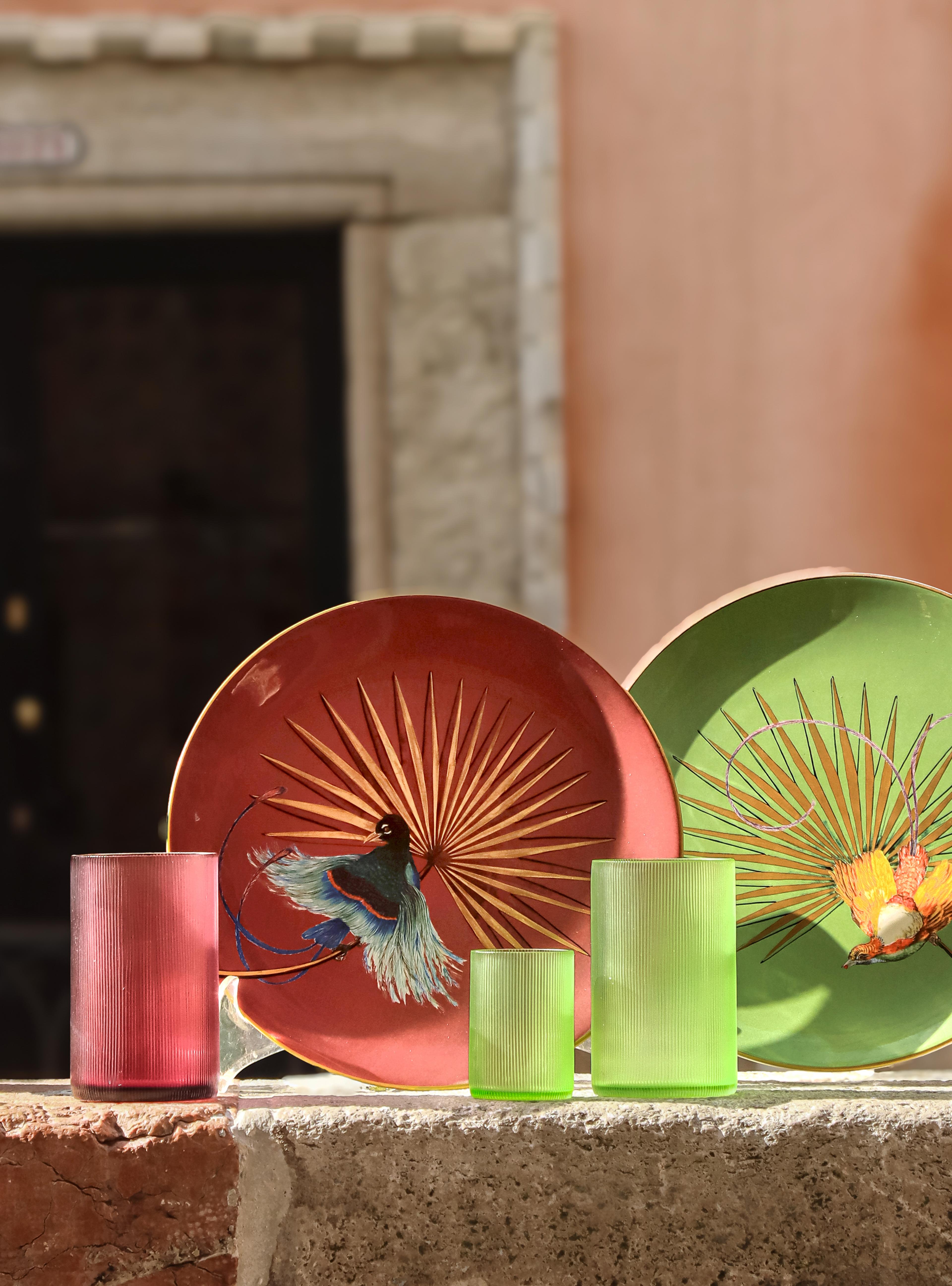 È stato come se tutto fosse pianificato sin dall'inizio: quando abbiamo abbinato la nostra Collezione Paradise con la collezione di bicchieri Millerighe di Micheluzzi, bicchieri e piatti sembravano essere stati concepiti insieme. Entrambe le collezioni hanno trovato un’affinità stilistica nella palette di colori ispirata al periodo Liberty, un'epoca che oggi appare più attuale che mai. E così anche la finitura sfaccettata dei bicchieri Serpentine sembrava creata appositamente per la nostra collezione Serpi. La nostra più recente collezione Legami, caratterizzata da linee fluide e colori vivaci, è stata addirittura esaltata nella sua contemporaneità quando è stata accostata ai bicchieri Mosso, dai toni intensi e dalla forma morbida. L’ accostamento dei pezzi ha creato un effetto sorprendente, esaltando le qualità di entrambe le creazioni.