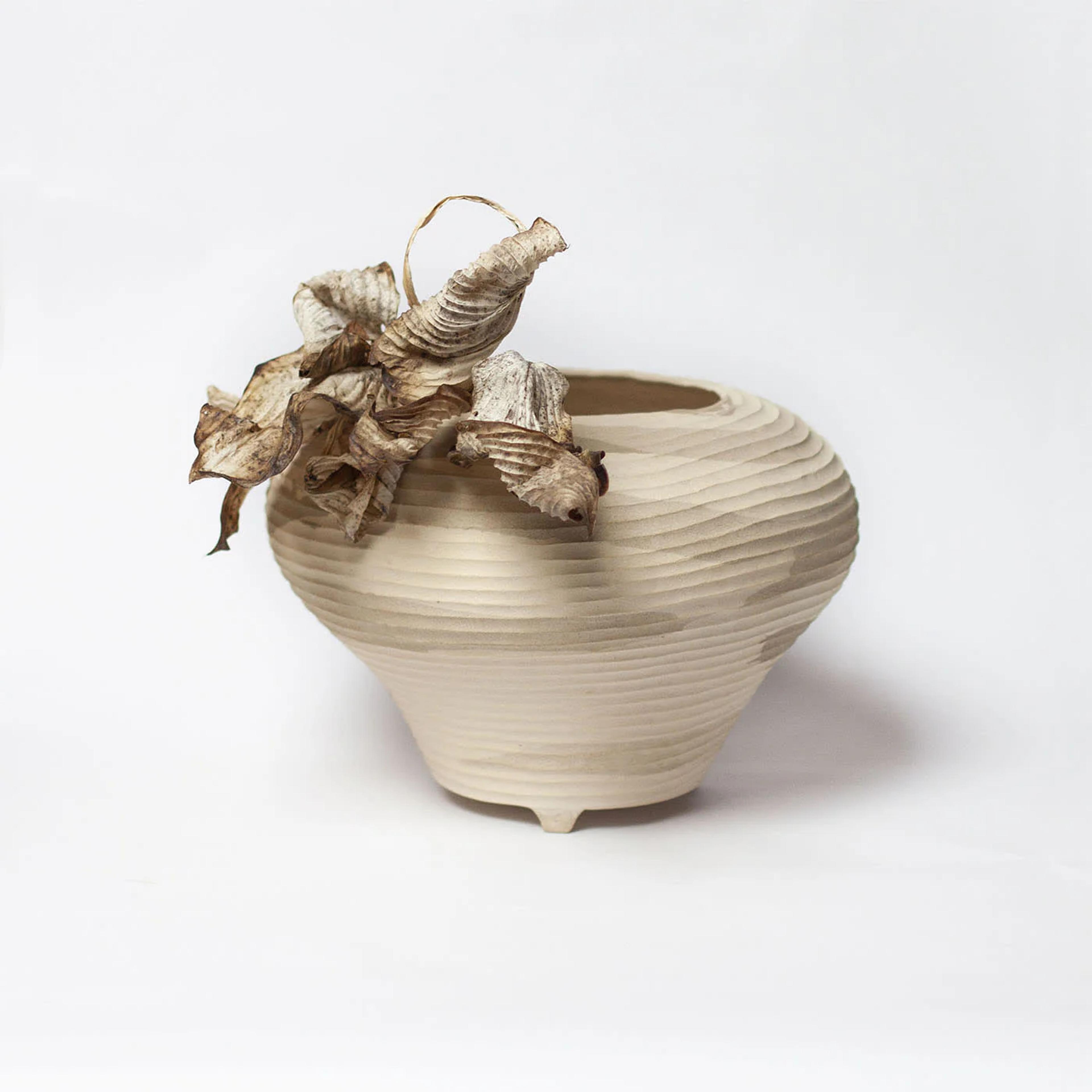 Per Elena Milani, l'atto di creare inizia nel silenzio. Che si tratti di lavoro o di riposo, cerca momenti di quiete, spazi che la riconducono al giardino che ha plasmato come suo rifugio personale. È lì, tra forme naturali mutevoli e senza tempo, che si radica il suo processo artistico. Da questo sguardo attento nascono le sue ceramiche: vasi modellati dalla biodiversità, dalla curiosità e dal desiderio di sentirsi parte di qualcosa di più antico e più grande delle costruzioni umane.