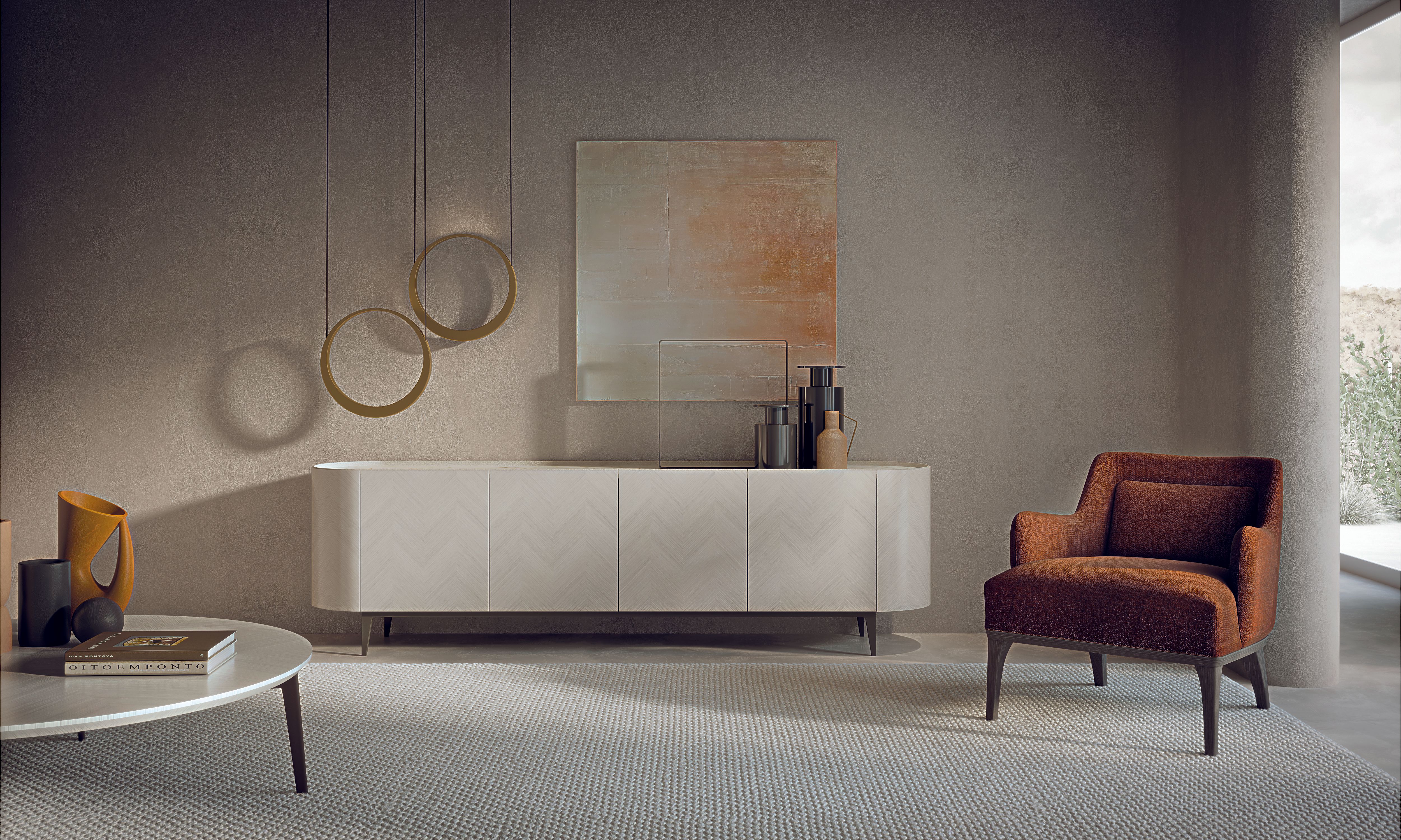 Un connubio fra tradizione e innovazione che nasce dal sapiente uso di materiali pregiati resi oggi protagonisti dalla creatività dell’arch. Giuseppe Carpanelli in un progetto originale che concepisce un’idea di arredo raffinata ed esclusiva. Mobili che ci trasmettono la capacità di essere al passo con i tempi rendendo omaggio alle proprie origini.
