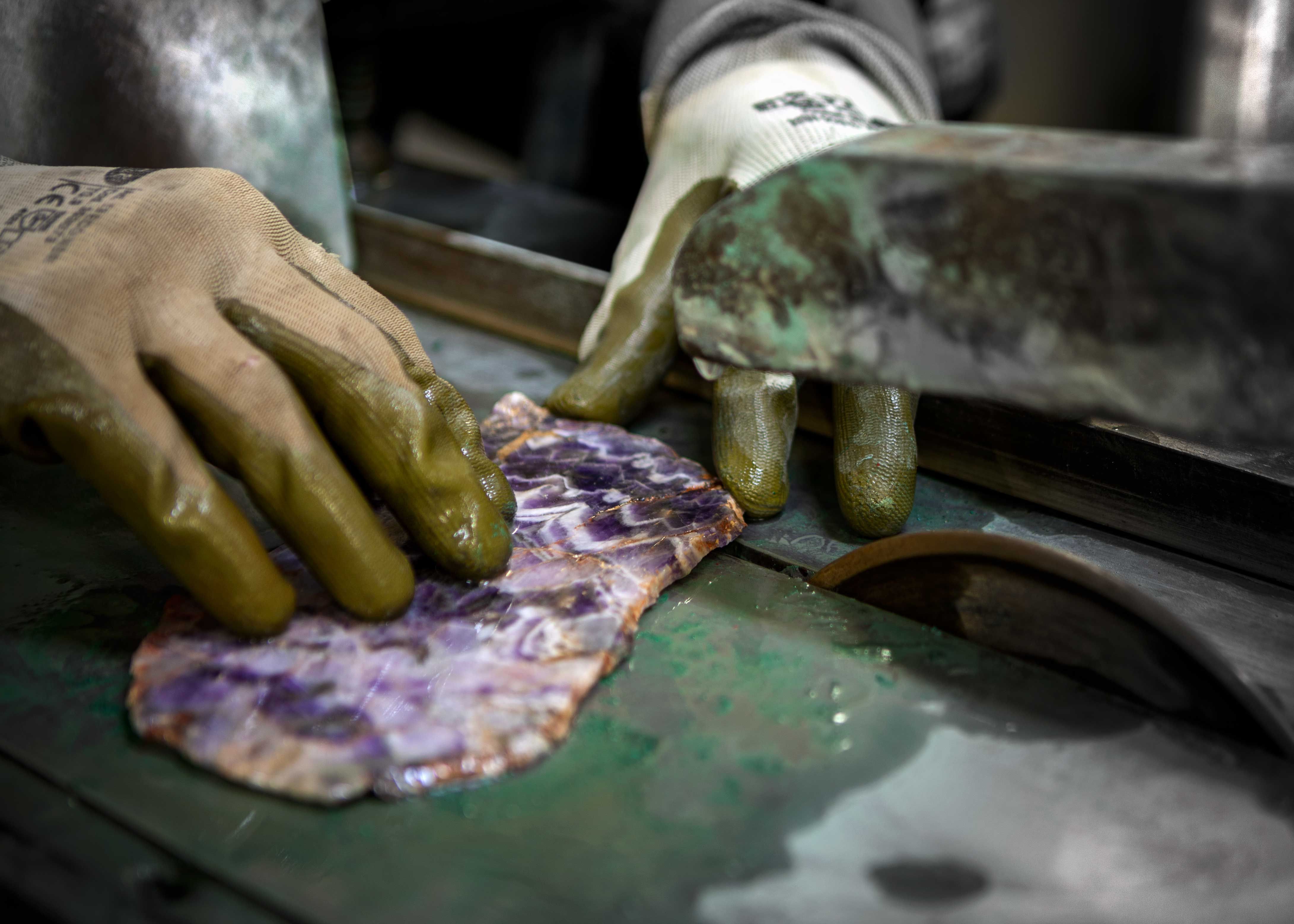 La lavorazione della pietra è un processo unico nel suo genere, in cui ogni elemento naturale viene valorizzato grazie a tecniche particolari e complesse che danno vita ad oggetti unici e dal fascino misterioso. Ci racconti come avviene il processo di reperimento e trasformazione di questi minerali dalla loro forma grezza a pezzi di design.