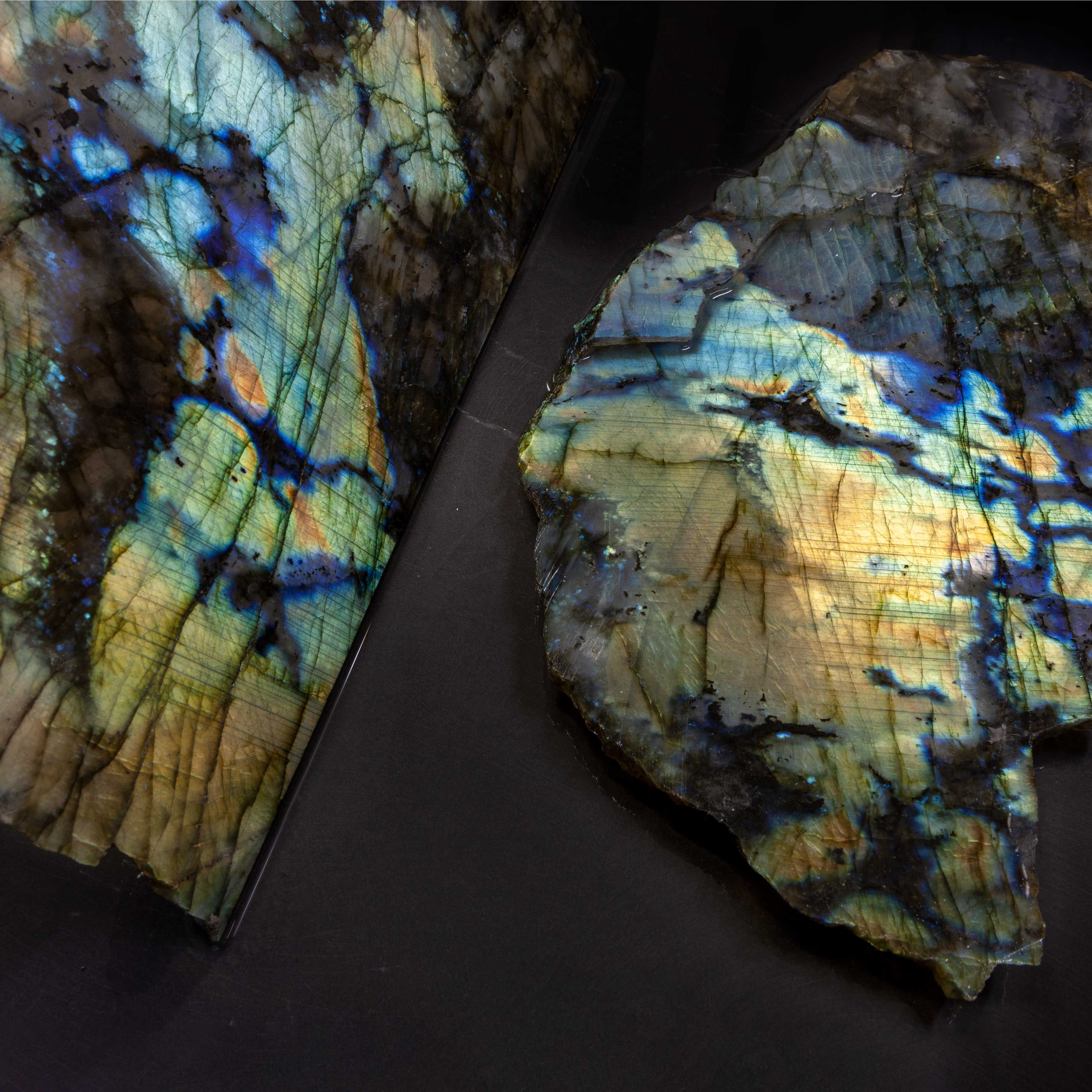 Senza alcun dubbio posso dire che la mia pietra preferita è sicuramente la labradorite, poiché è una delle poche che ancora oggi, ogni volta che la vedo, riesce a trasmettermi sensazioni uniche indescrivibili. La caratteristica principale di questo splendido materiale è il fenomeno ottico della “labradorescenza”; esso si presenta come uno scintillio di lampi di colore azzurro, viola, verde, giallo e arancio. L'effetto si origina dall'interferenza dovuta alla presenza di vari strati laminari all'interno del minerale, questo fa sì che i colori si alternano e variano costantemente ogni qual volta l’osservatore si sposta e cambia la sua prospettiva. Questa pietra viene spesso lavorata a mosaico per esaltare al meglio le sue caratteristiche di variazione cromatiche. Molte sono le storie raccontate su di essa, ma quella che più riesce a spiegare al meglio le sue peculiarità è la famosa leggenda eschimese. Essa racconta che una volta l'aurora boreale fosse imprigionata nella roccia lungo la costa del Labrador, ma un guerriero errante eschimese, con dei colpi di lancia, liberò la maggior parte delle luci intrappolate nella roccia, mentre quelle che vi rimasero formarono la labradorite.