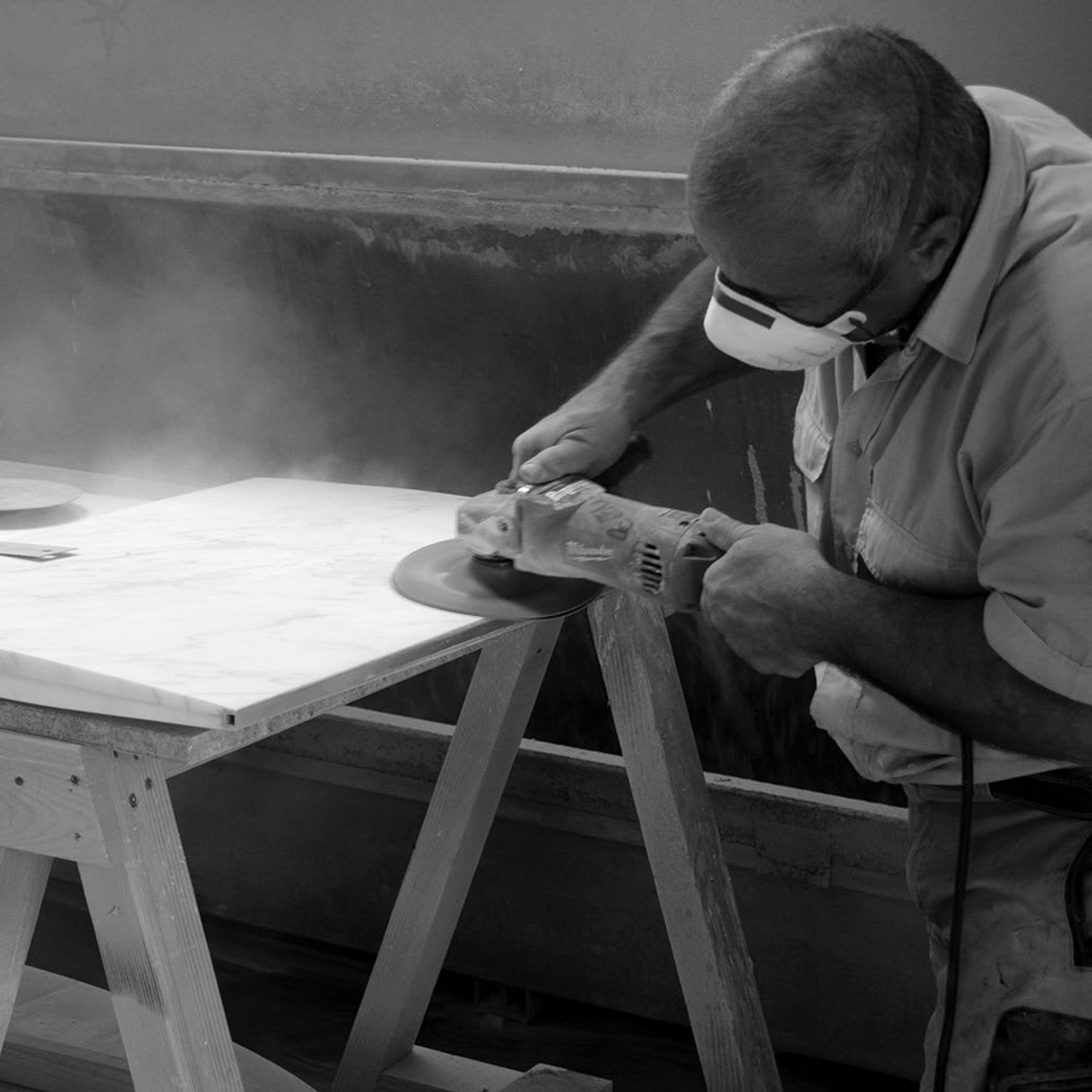 Depuis 1975, Stefano Giaquinto se consacre au travail du marbre, qu'il réinterprète avec une vision innovante qui allie tradition et technologie. Dès les années 1980, sa curiosité l'a conduit à explorer de nouvelles techniques de construction, rendant le marbre plus polyvalent, non seulement en tant qu'élément structurel, mais aussi en tant qu'élément clé de la décoration d'intérieur. En développant des panneaux ultrafins et des portes d'armoires en marbre, il a élargi les possibilités de ce matériau prestigieux, l'introduisant dans des contextes où son poids et sa fragilité étaient auparavant des facteurs limitants.