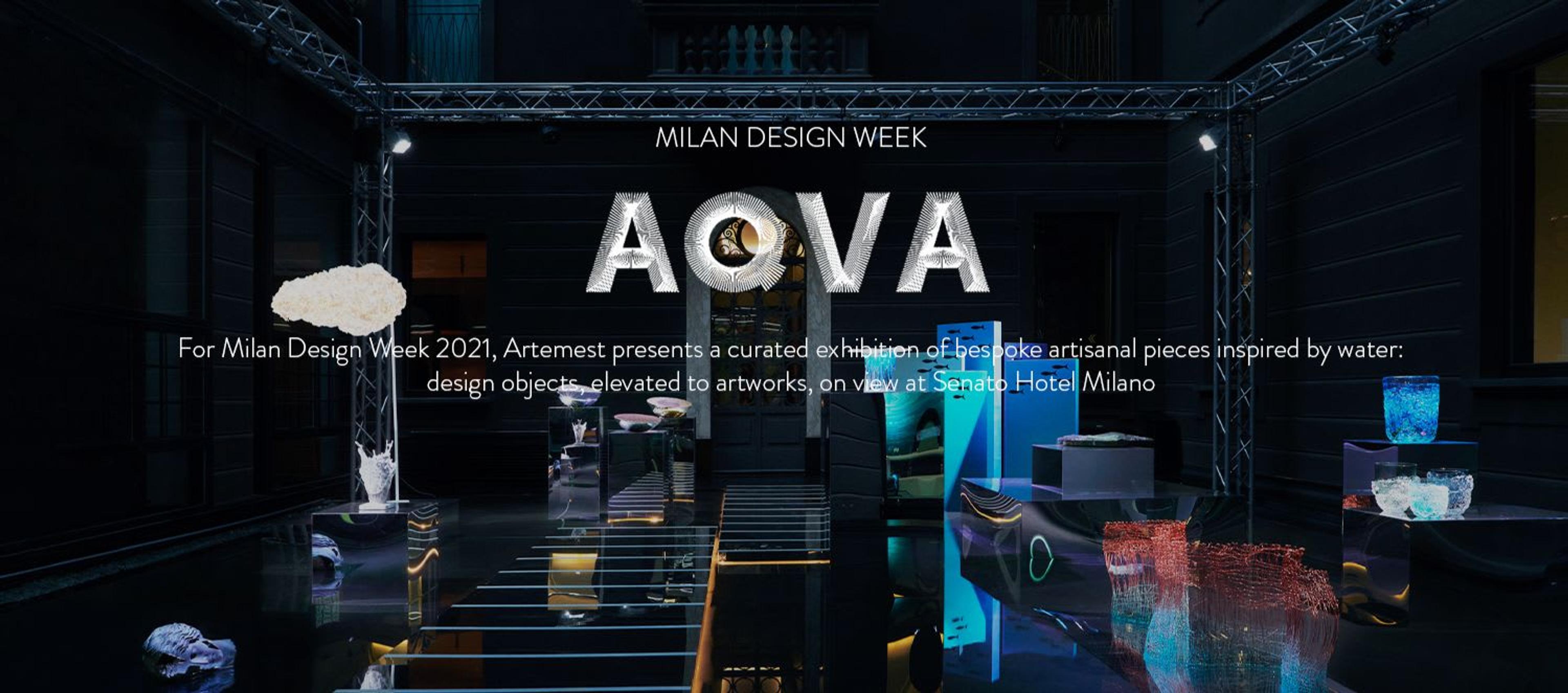 Anlässlich der Mailänder Designwoche 2021 präsentiert Artemest AQVA: eine galerieähnliche Ausstellung von maßgeschneiderten Kunstwerken und Designstücken, die vom Thema Wasser inspiriert sind, von italienischen Kunsthandwerkern handgefertigt und im renommierten Senato Hotel Milano ausgestellt werden.