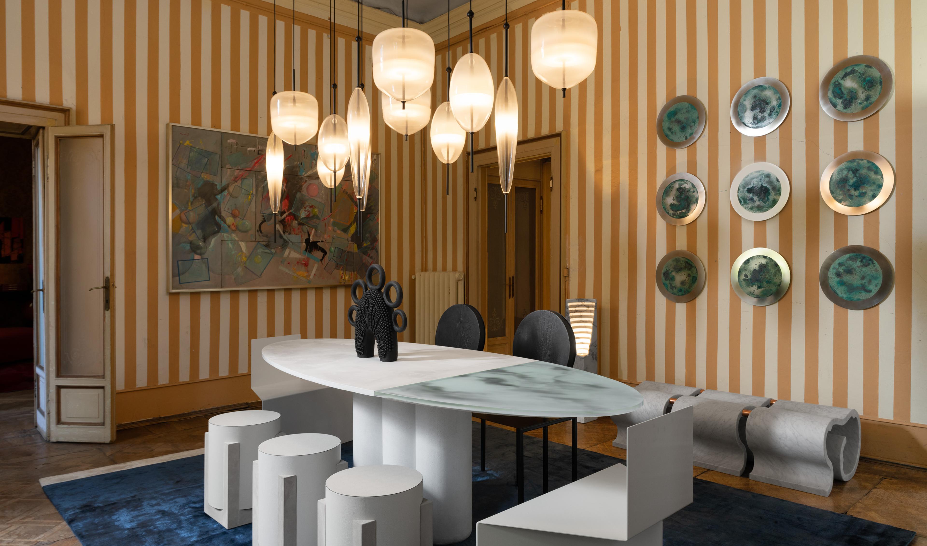 The Dining Room project includes pieces by Atelier Brume, Atelier Terrai, Caiafa, Casarialto, Coki, Corsi Design Factory, Creart, CuoreCarpenito, DELMONDO Studio, Editions Milano, Ermes, FFerrone, FiammettaV Home Collection, Filadelfio Todaro, GINORI 1735, Giobagnara, Isato Prugger, JCP Universe, L'Artiere, Les Ottomans, Margherita Fanti, Nobe Italia, Nuove Forme, Ovo - Idee e Manufatti, Pietro Spoto Studio, Pop Pot, Splot Design, Tapis Rouge, Travertini & Pietre and WonderGlass.