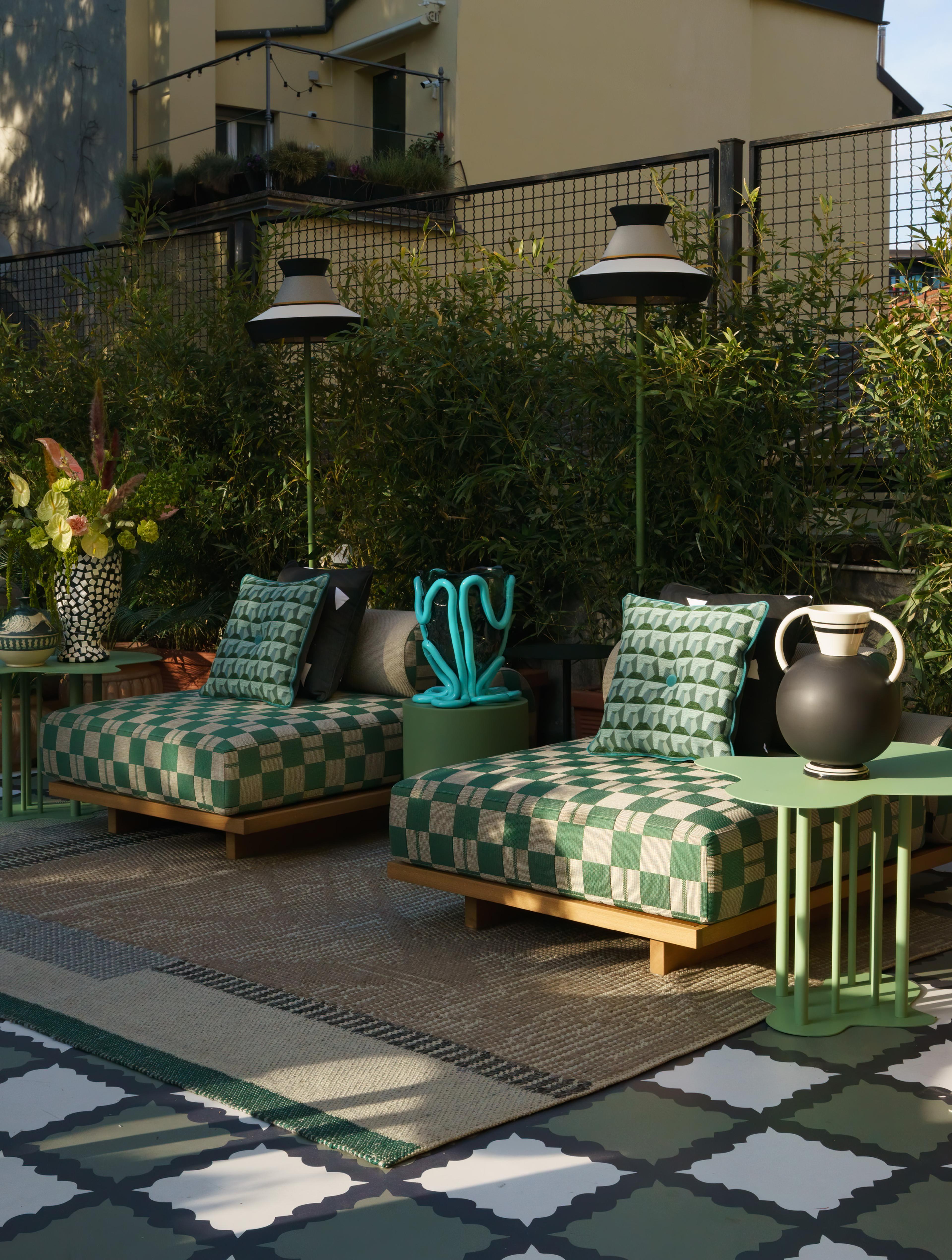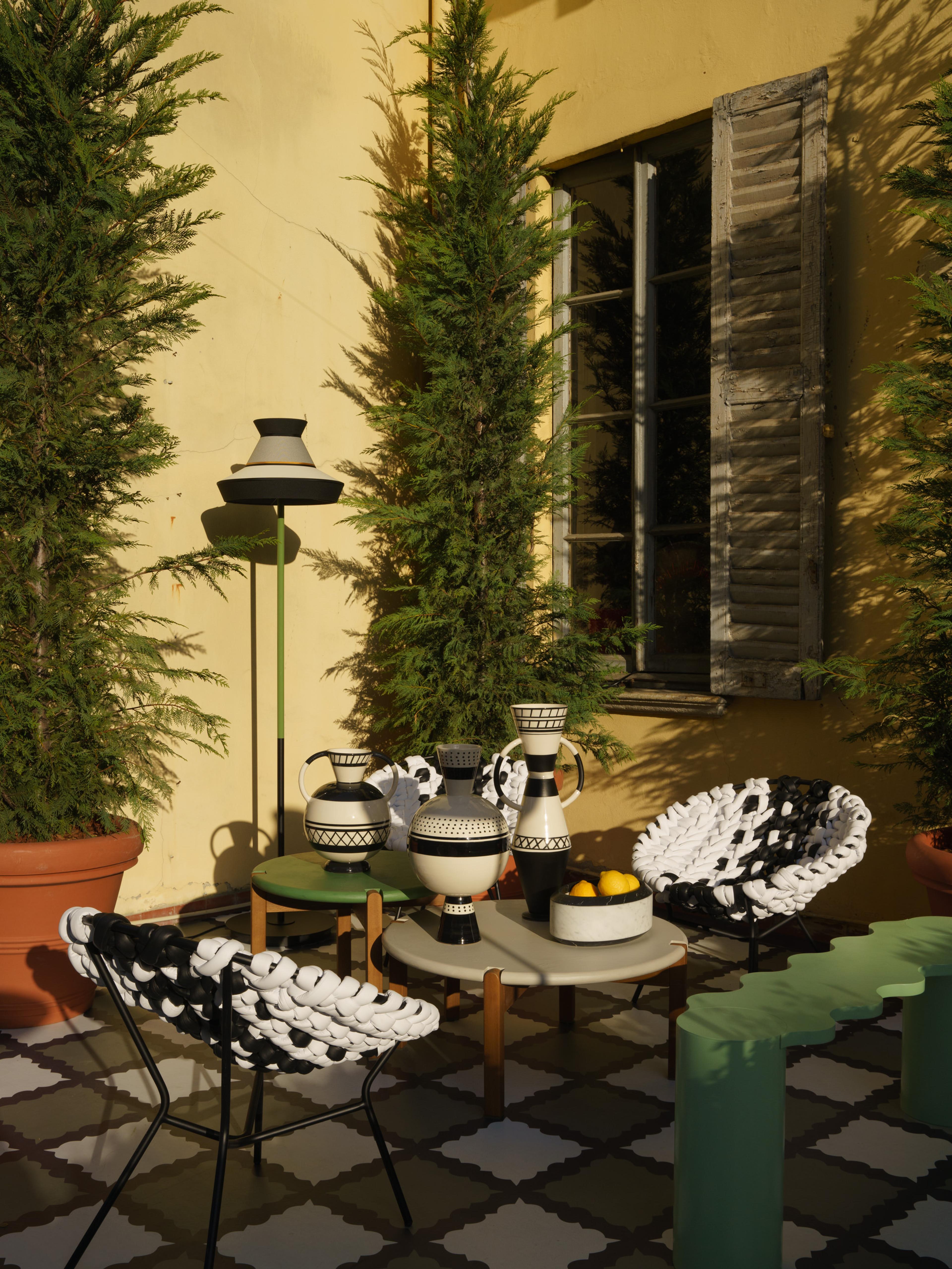 The Terrace project includes pieces by Anna Paola Cibin, Bitossi Ceramiche, Chapel, Cimento, Contardi Lighting, Corsi Design Factory, Craafts, Exteta, Fornace Masini, Francesco della Femina, Grand Tour by Vito Nesta, Jwana Hamdan, Livio De Simone, L'Opificio, Maison Arabella, Mepra, Mun, Natalia Criado, Officine Tamborrino, Once Milano, Romano, Rometti, Sabrina Sguanci Baroni, Scandola Marmi and Studio Le Nid.