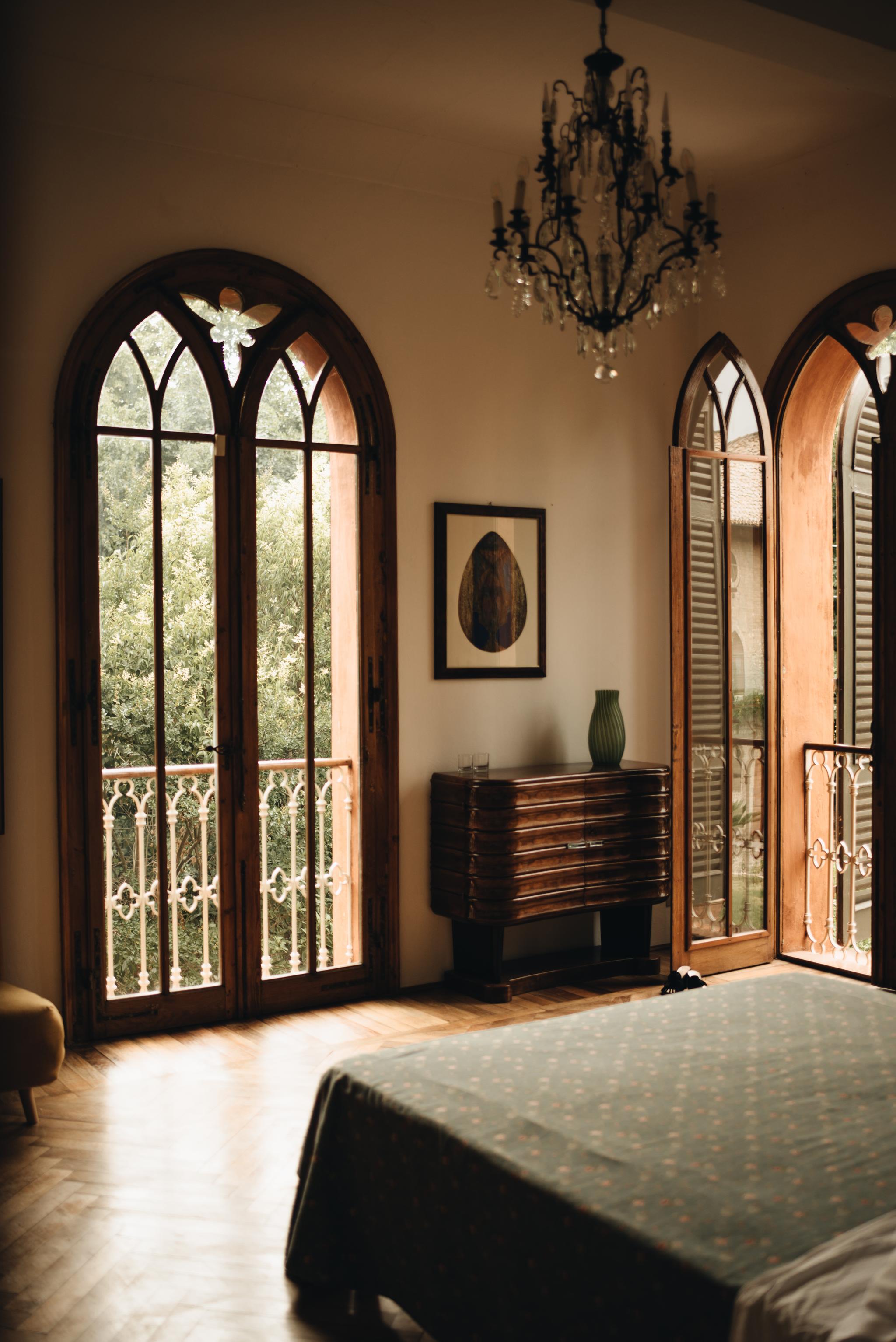 Ten years after founding the acetaia, Cristina and Silvia unveiled Le Dimore del Borgo, a refined hospitality project that reflects the same values of authenticity and elegance. Located within the historic family estate, the guesthouse comprises eight intimate rooms, each distinct in character, yet united by a common thread of curated beauty. The interiors, adorned with heirloom furniture, mid-century accents, and an eclectic sensibility drawn from the sisters’ lifelong love of art and fashion, create a layered, lived-in atmosphere where every object has a story.
