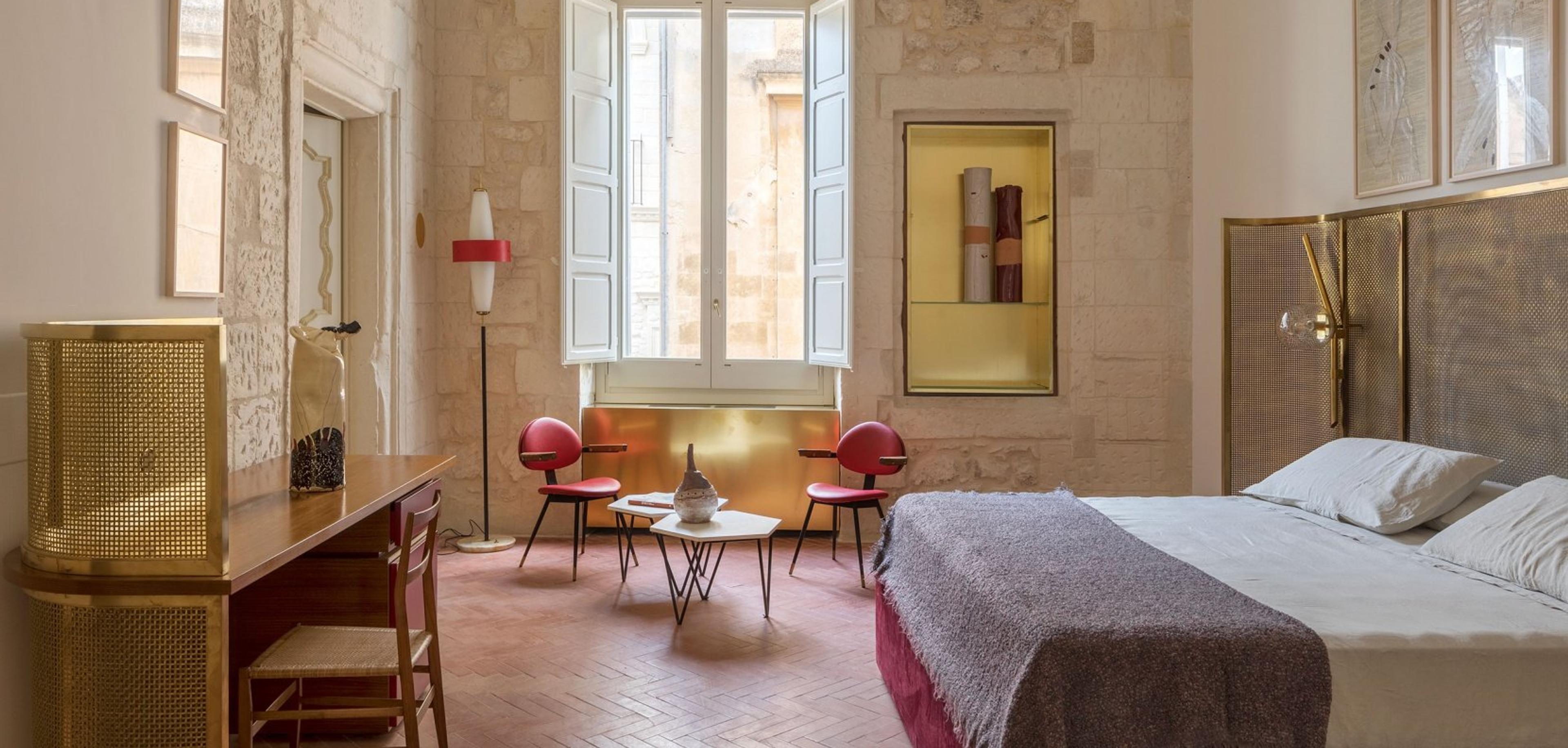 Anna Maria Enselmi hat das geschichtsträchtige Gebäude in eine Residenz voller Kunst und Design verwandelt, die vom modernistischen Erbe von Gio Ponti inspiriert ist. Überall im Hotel verstreut findet man eine beeindruckende Sammlung von Pontis Möbeln, die im Dialog mit anderen Ikonen der italienischen Moderne wie Franco Albini, Ettore Sottsass und Ignazio Gardella stehen.