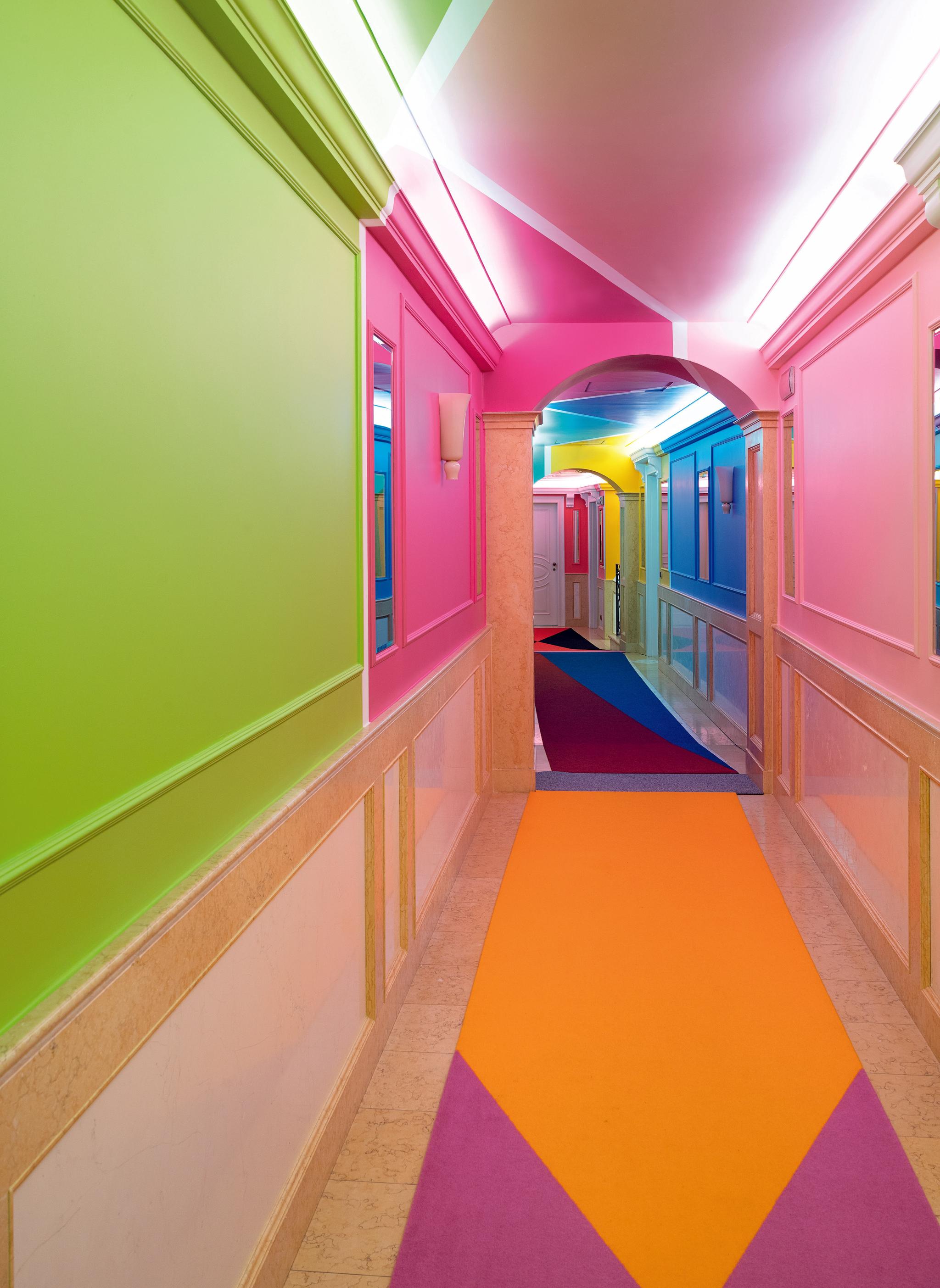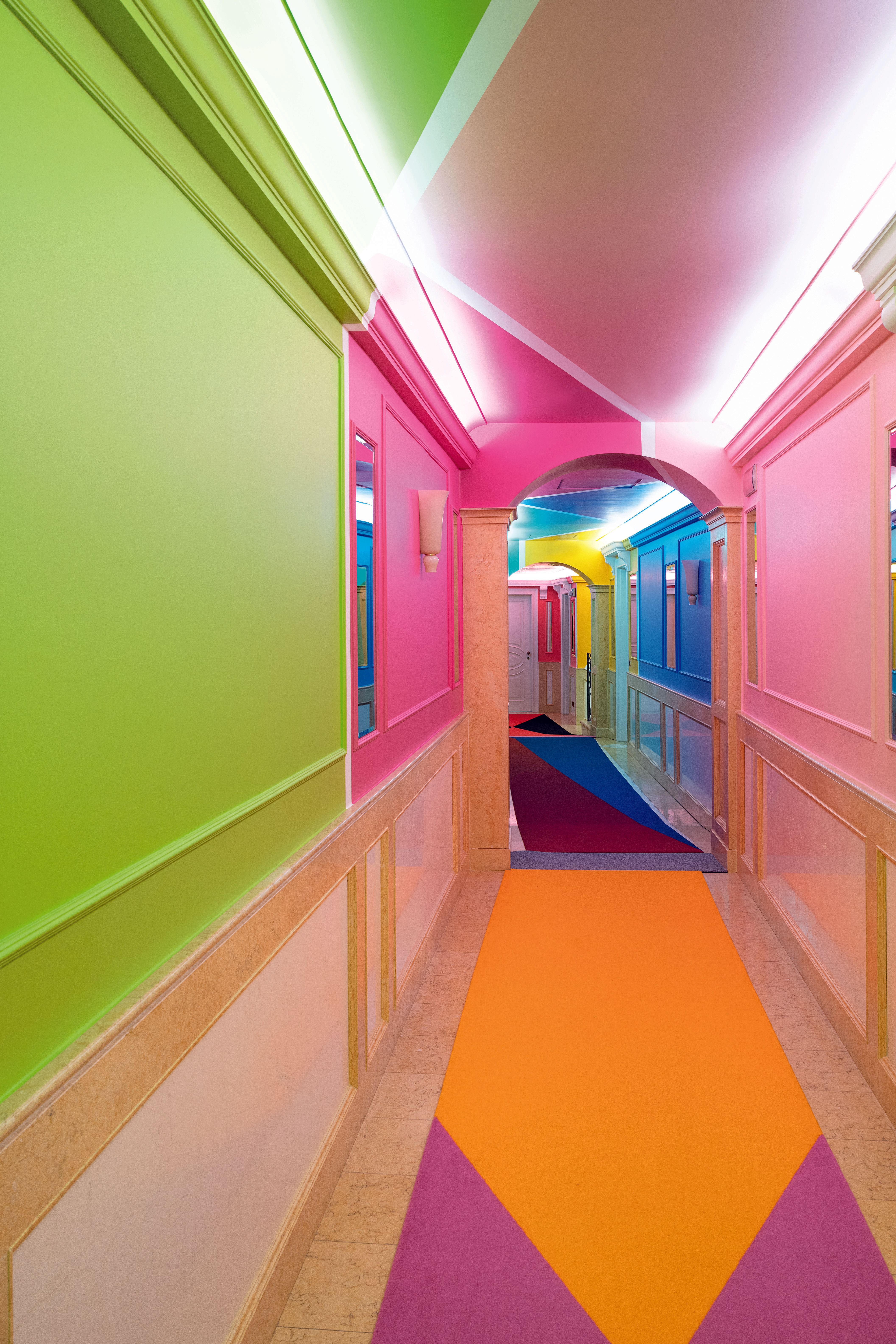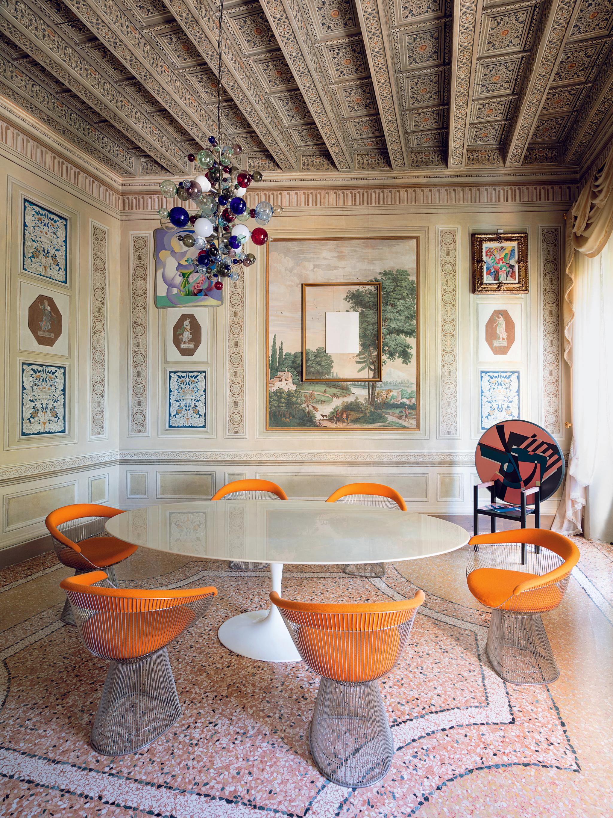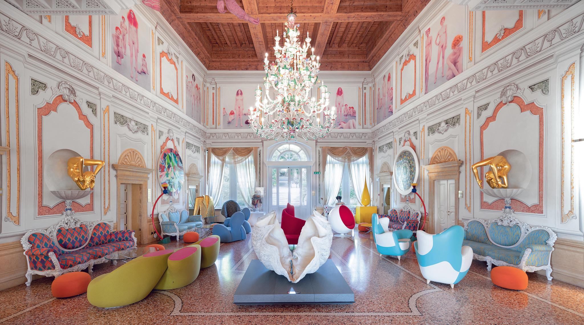 Once left in silence for decades, the villa was revived through the vision of entrepreneur Dino Facchini and the creative direction of architect and designer Alessandro Mendini, who turned its historic soul into a contemporary sanctuary for art and beauty. The restoration preserves the grace of the original Venetian architecture while introducing a bold and joyful language of color, geometry and form - creating a setting where history and modernity blend seamlessly, each enhancing the other in a dialogue that feels both timeless and daring.