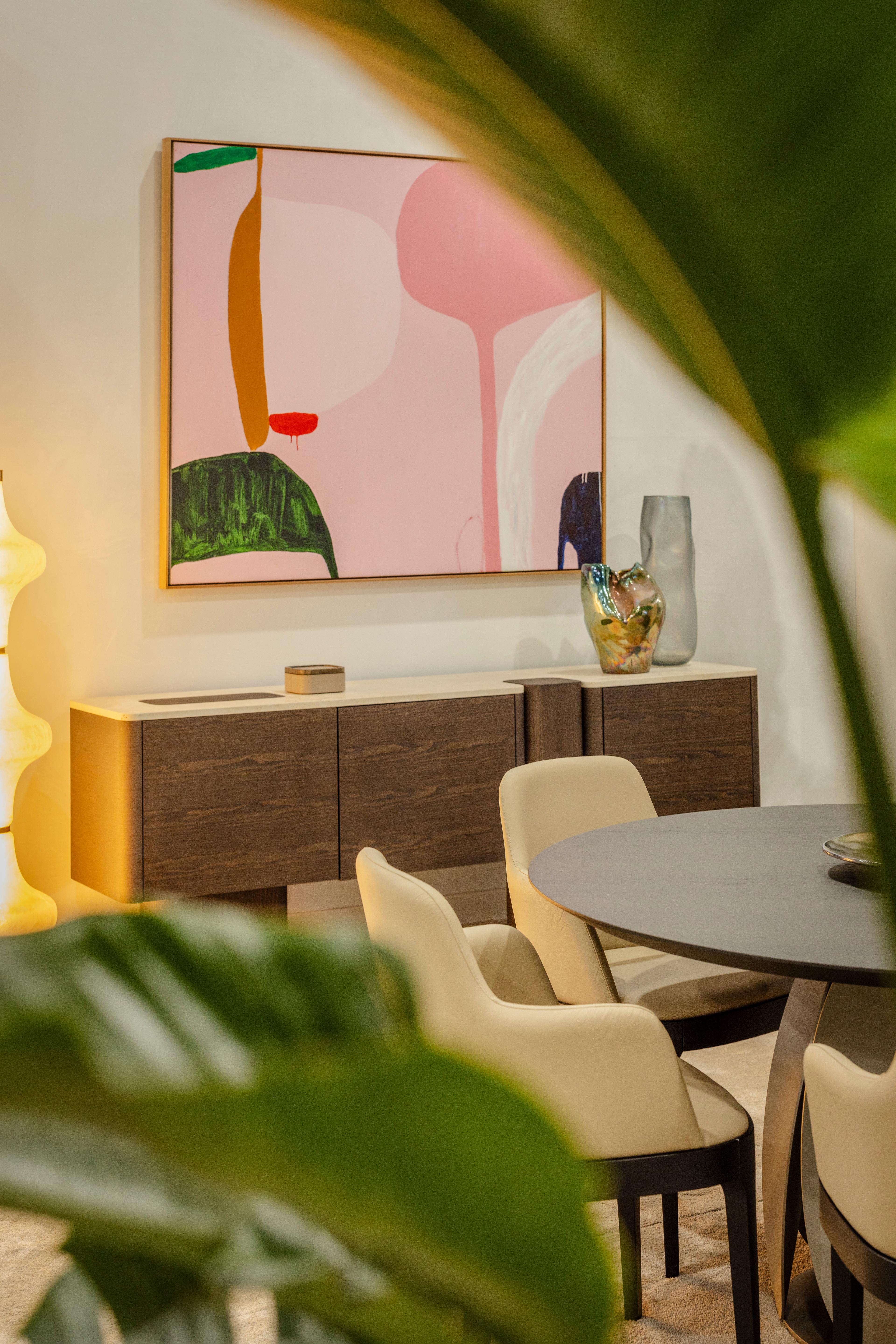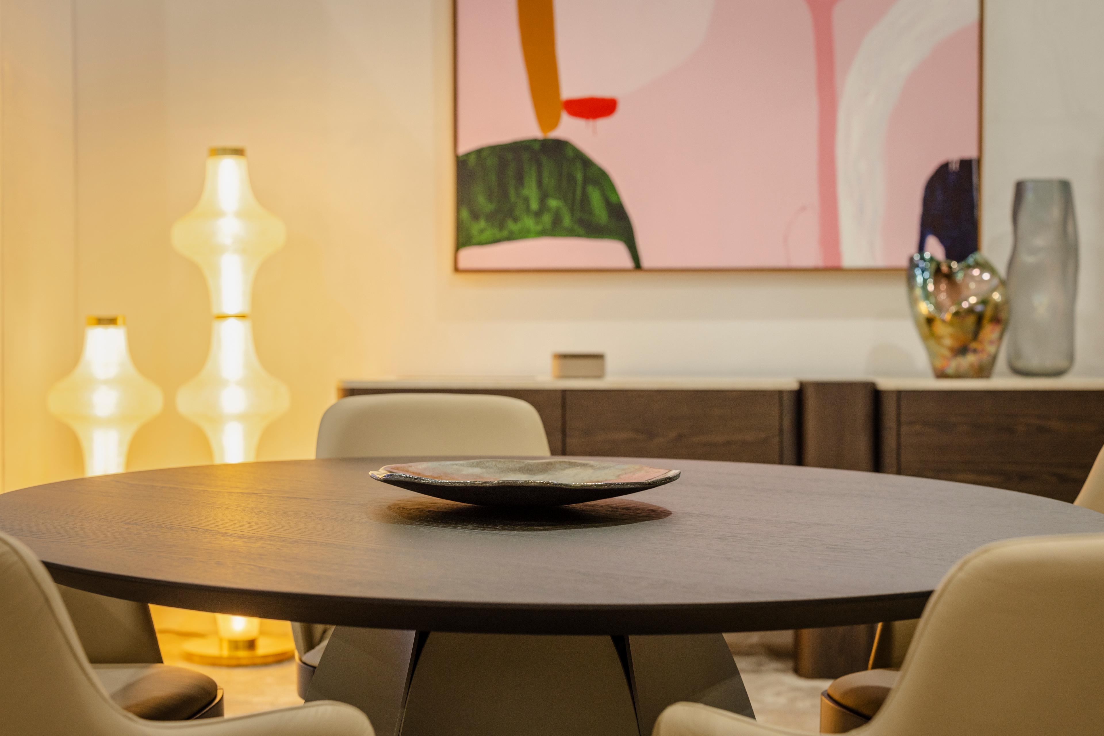 The partnership between Artemest and Related underscores a mutual commitment to excellence and innovation in design. For the occasion, Artemest has furnished the booth creating a welcoming lounge area featuring a selection of sophisticated pieces, including a sculptural round dining table inspired by tulips with petal-like rolled metal elements and a Laguna oak-veneered top; floor lamps in acid-etched Murano glass and brass that create a distinctive ambiance; and meticulously crafted decorative items in leather, wood, ceramics and glass. Each piece is a testament to Italy’s storied tradition of craftsmanship, blending timeless artistry with modern design aesthetics.
