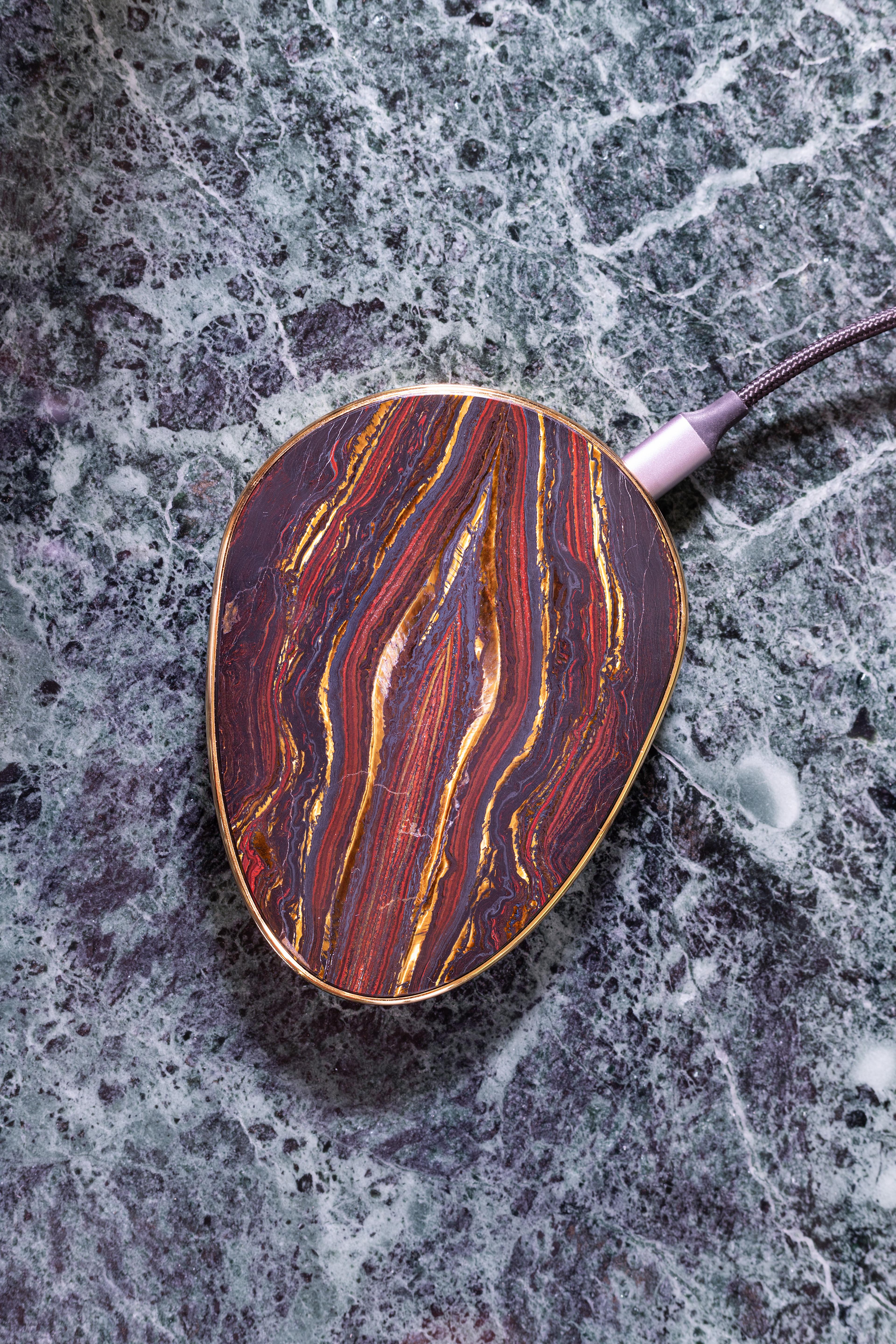 I chargers nascono come oggetti che rispondono alle esigenze di una società contemporanea sempre più simbiotica con device digitali e che, al tempo stesso, riconosce ed apprezza la qualità della buona manifattura di materiali pregiati fatti per durare nel tempo. Nascono con questa filosofia i caricabatterie ad induzione Enki, ispirati alla divinità sumera dell’acqua, della conoscenza, dell’artigianato e della creazione. La scelta della pietra è frutto di una selezione che porta a scartare le parti meno pure e meno pregiate per poi abbinarle sapientemente, in base al colore, alla tonalità e all’intensità, alla scocca (oro, argento, canna di fucile), che più si addice e che permette maggiormente di esaltare la bellezza intrinseca della pietra.