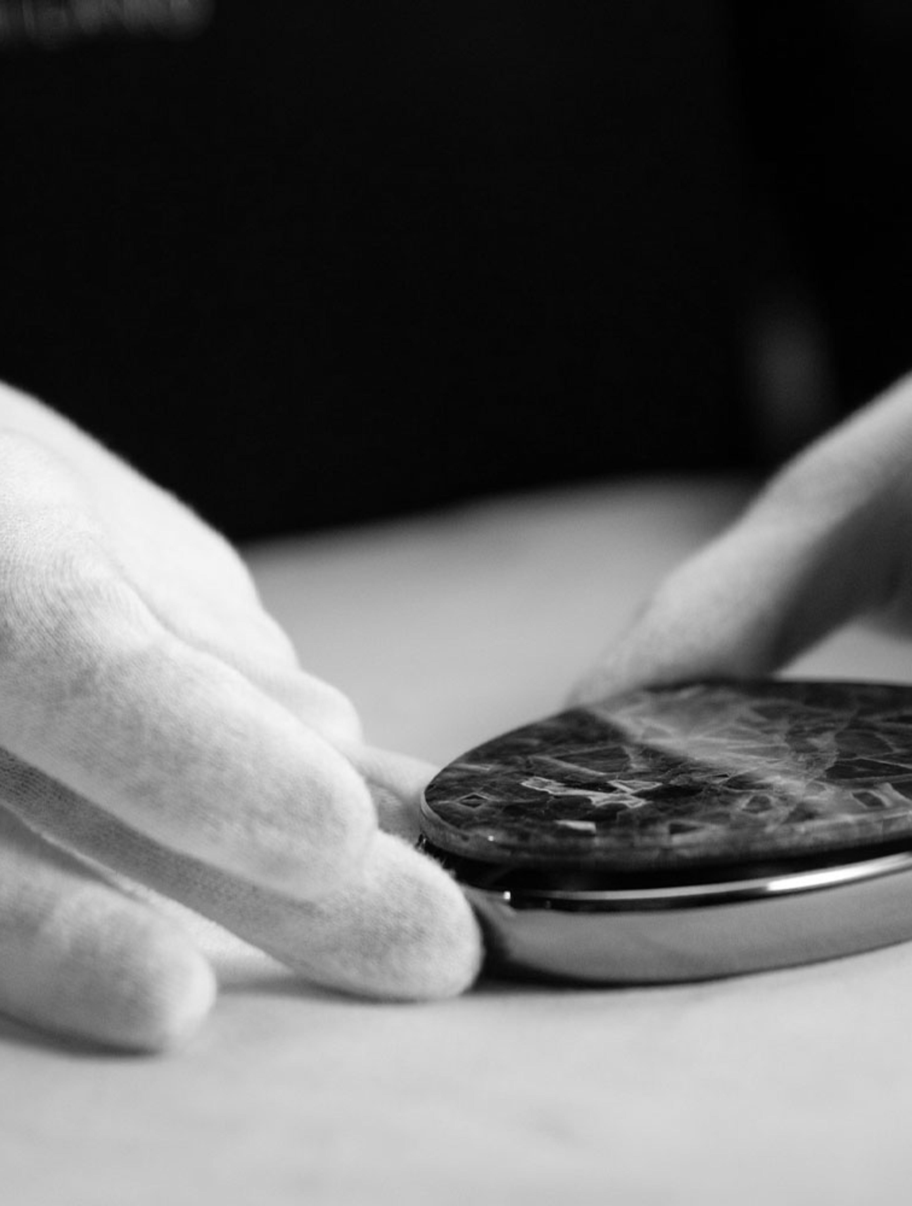 L’utilizzo di pietre naturali rappresenta il vostro legame con la tradizione ed anche un know-how inedito, se messo in rapporto all’ambito tecnologico. Raccontateci come nasce uno dei vostri chargers, dalla scelta della pietra alla lavorazione finale.