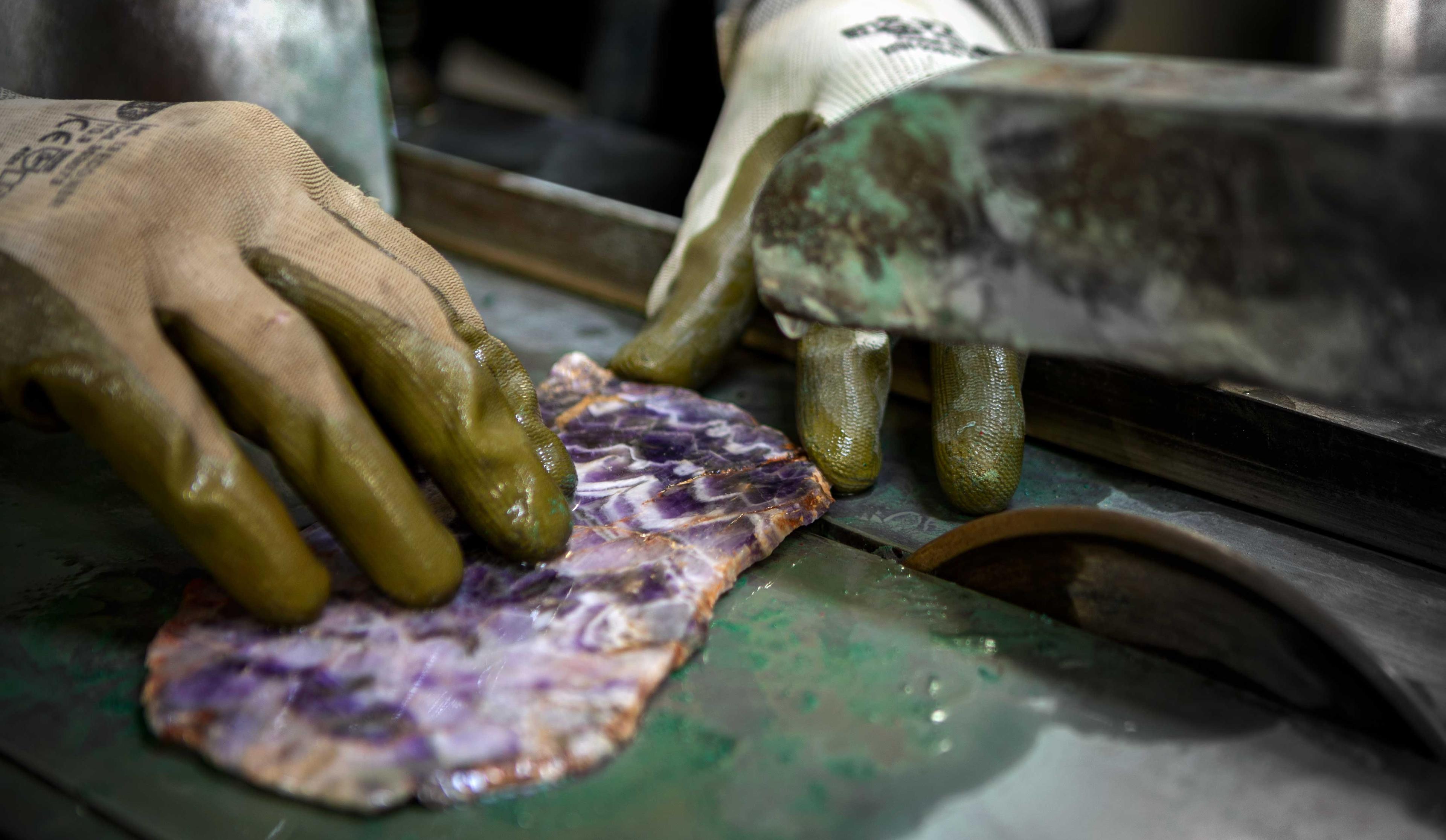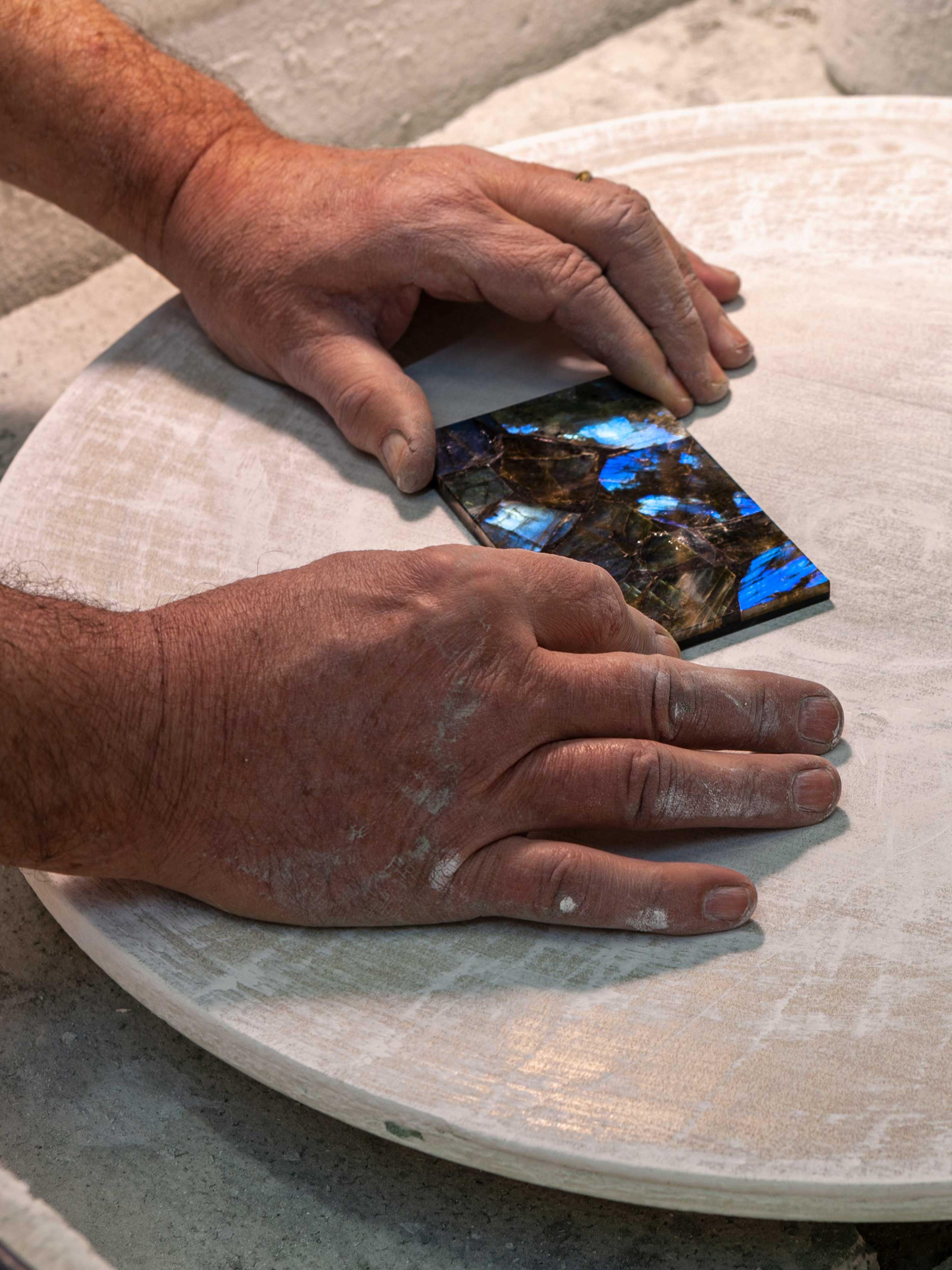 La lavorazione della pietra è un processo unico nel suo genere, in cui ogni elemento naturale viene valorizzato grazie a tecniche particolari e complesse che danno vita ad oggetti unici e dal fascino misterioso. Ci racconti come avviene il processo di reperimento e trasformazione di questi minerali dalla loro forma grezza a pezzi di design.